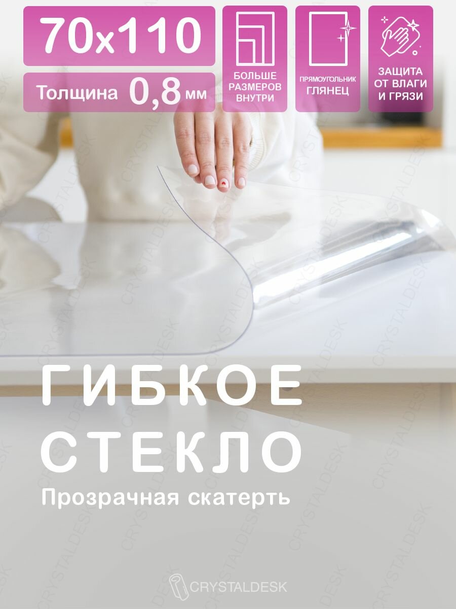 Купить Прозрачная скатерть CrystalDesk на стол 110x70 см. Жидкое гибкое стекло 0.8 мм. Прозрачная мягкая клеенка ПВХ.