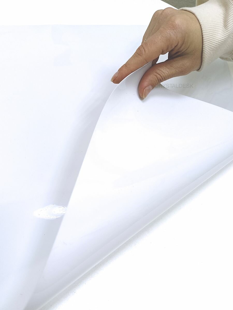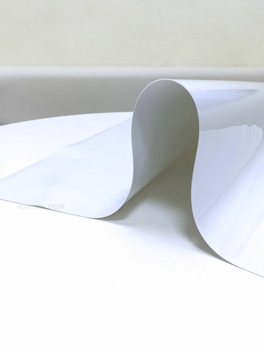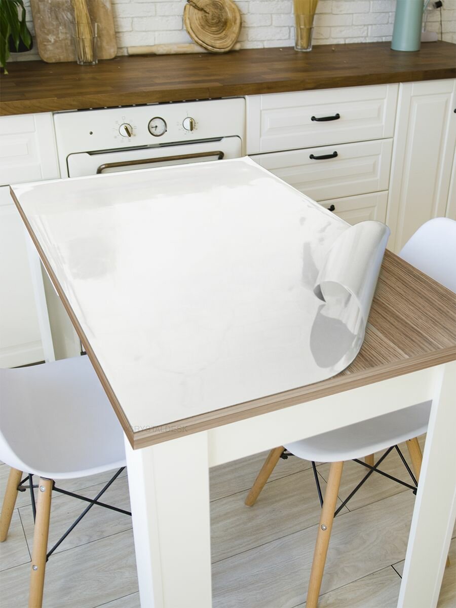 Белая скатерть CrystalDesk на стол 60x40 см. Жидкое гибкое стекло 0.8 мм. Мягкая клеенка ПВХ.