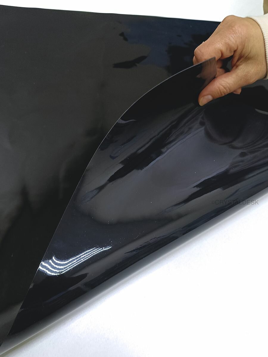 Черная скатерть CrystalDesk на стол 90х60 см. Жидкое гибкое стекло 0.8 мм. Мягкая клеенка ПВХ.