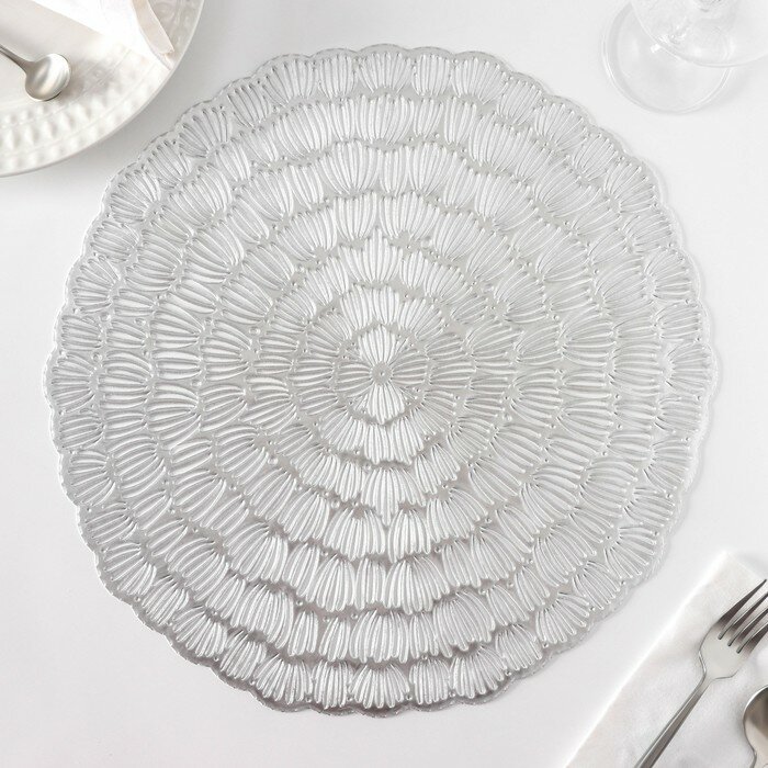 Набор салфеток сервировочных на стол Доляна «Бутоны», d=38 см, 4 шт, цвет серебро, 9912929 интересное: