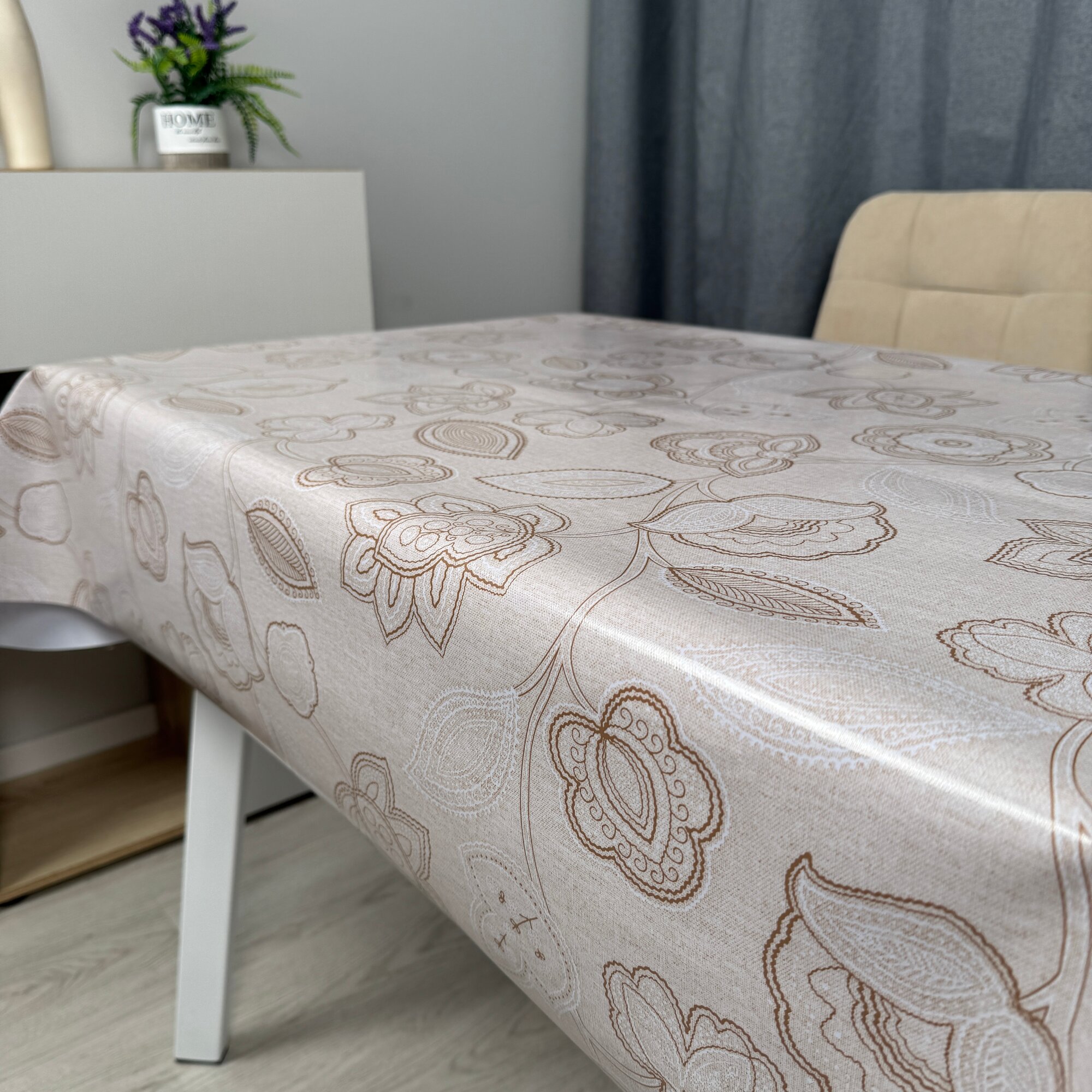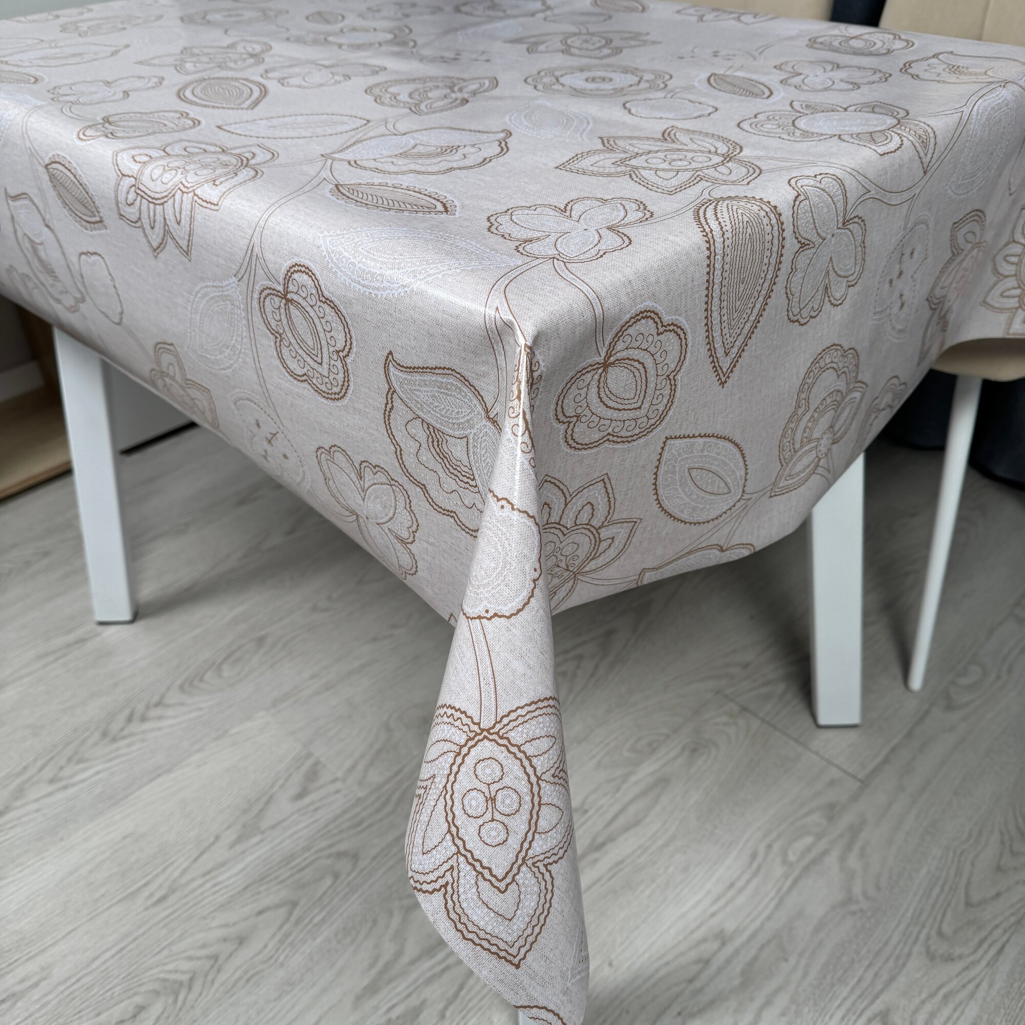Скатерть Rosenberg SF, клеенка, водоотталкивающая, бежево-серая, 140х220 см