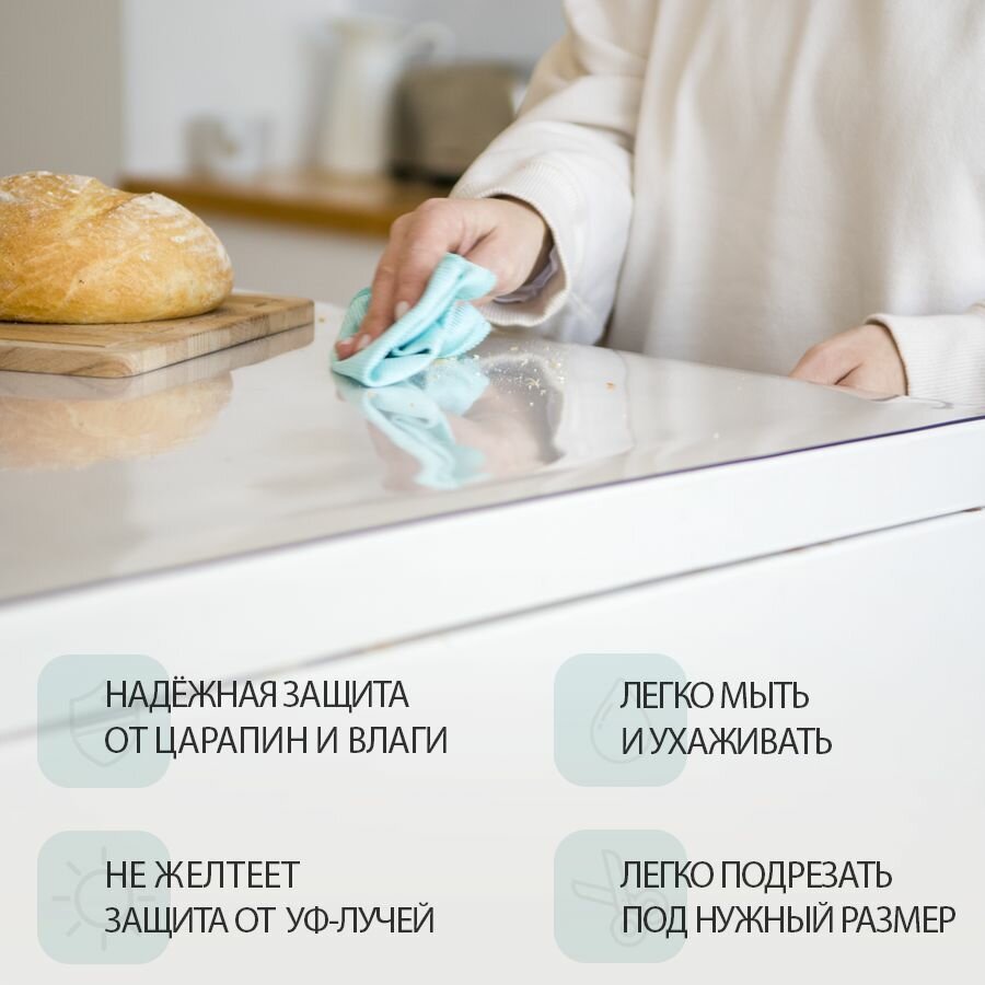 Прозрачная скатерть на стол (гибкое/мягкое стекло) CrystalDesk. Толщина 1,5 мм. ПВХ скатерть. 80х140 см. Прозрачная.