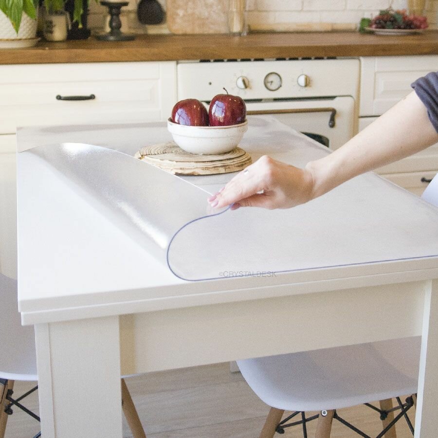 Прозрачная скатерть на стол (гибкое/мягкое стекло) CrystalDesk. Толщина 1 мм. ПВХ скатерть. 80х110 см. Прозрачная.