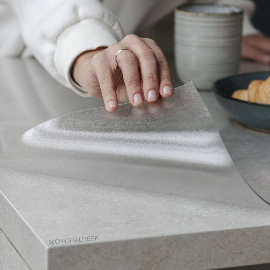 Скатерть на стол CrystalDesk. Гибкое жидкое стекло. Толщина 1 мм. ПВХ скатерть. 70х110 см. Прозрачная.