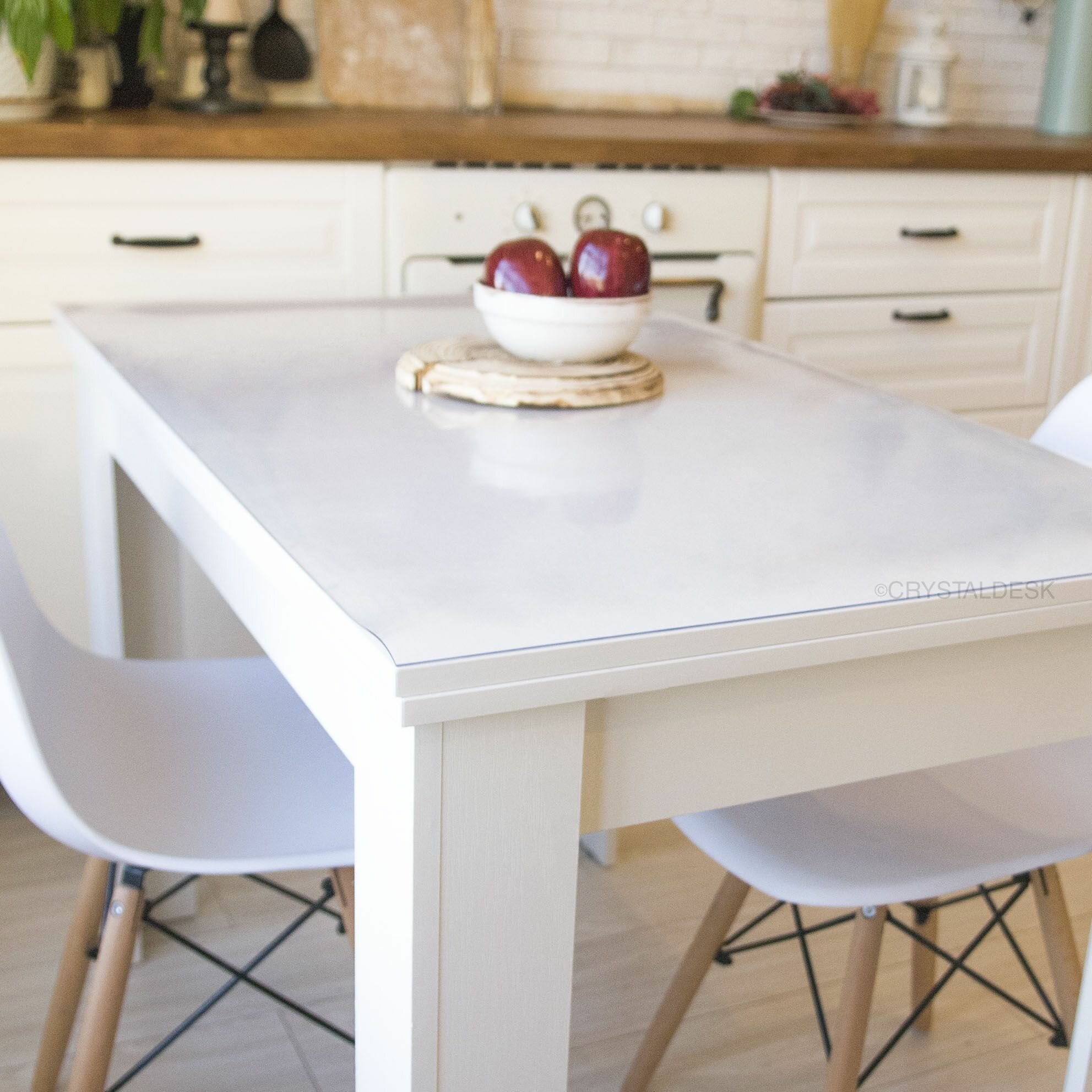 Белая матовая скатерть на стол CrystalDesk 120 80 см. Жидкое гибкое стекло 1.5 мм. Белая мягкая клеенка ПВХ.