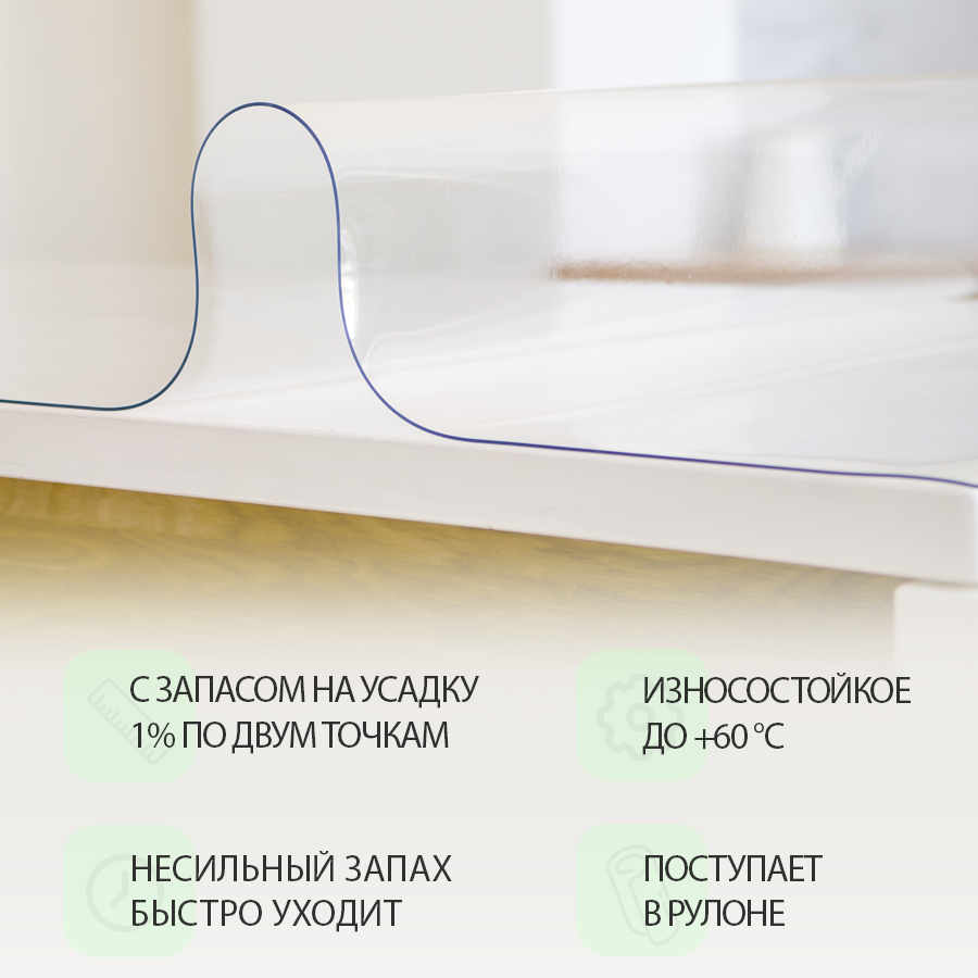 СохранитьПрозрачная скатерть на стол (гибкое/мягкое стекло) CrystalDesk. Толщина 1,5 мм. ПВХ скатерть. 60х90 см. Прозрачная. интересное: