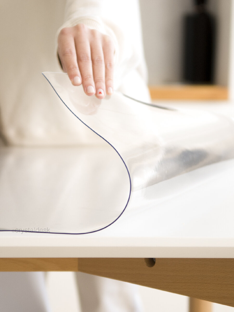 Прозрачная скатерть CrystalDesk (гибкое/мягкое стекло). Толщина 0.5 мм. ПВХ скатерть. 90x70 см.