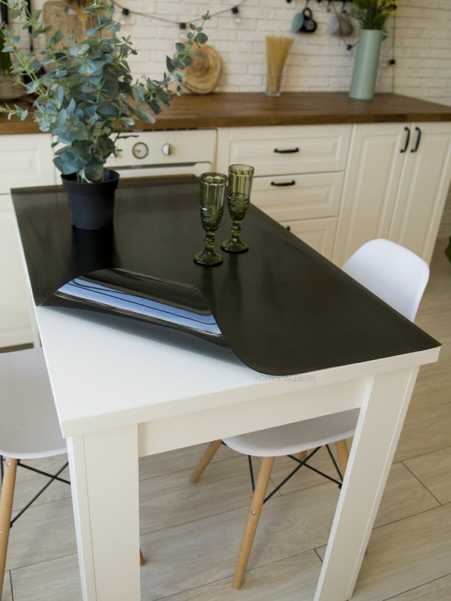 СохранитьЧёрная рифлёная тонированная скатерть на стол 140 80 см. Жидкое гибкое стекло 1.5 мм. Чёрная мягкая клеенка ПВХ. интересное: