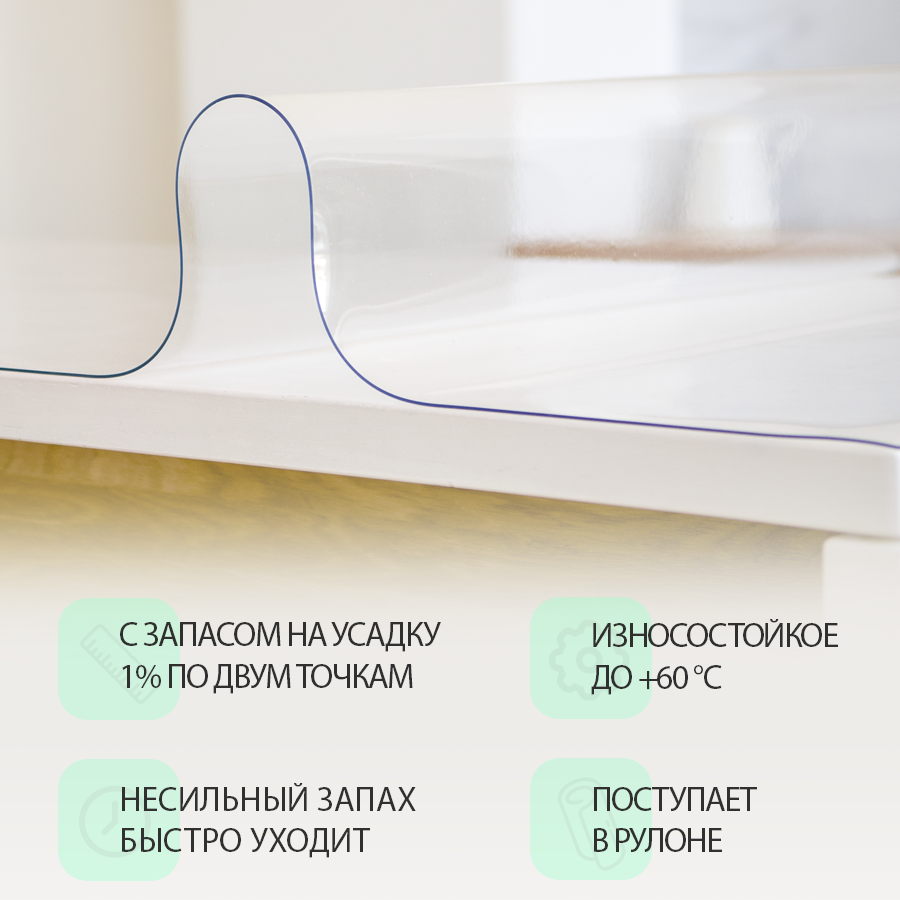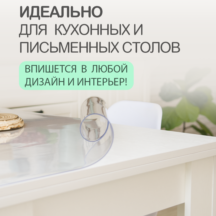 СохранитьПрозрачная скатерть CrystalDesk (гибкое/мягкое стекло). Толщина 0.5 мм. ПВХ скатерть. 90х140 см. интересное: