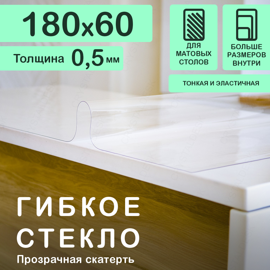 СохранитьПрозрачная скатерть CrystalDesk (гибкое/мягкое стекло). Толщина 0.5 мм. ПВХ скатерть. 60х180 смм. Прозрачная. интересное: