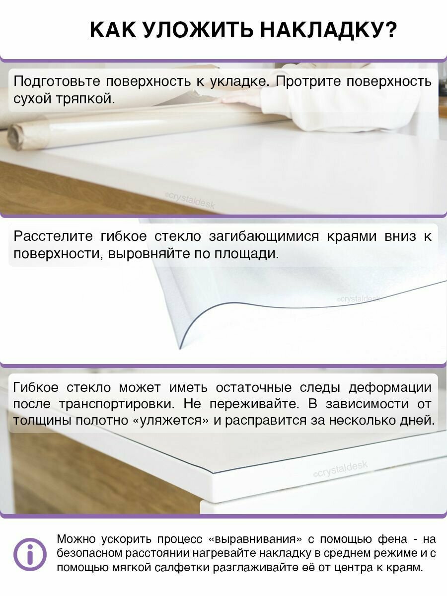 Скатерть на стол CrystalDesk. Гибкое жидкое стекло. Толщина 1 мм. ПВХ скатерть. 70х110 см. Прозрачная.