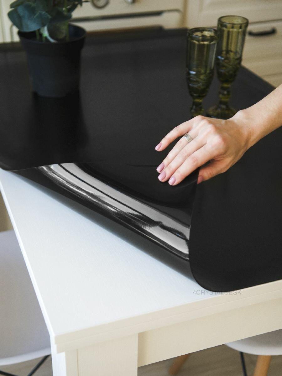 СохранитьЧёрная рифлёная тонированная скатерть на стол 160 80 см. Жидкое гибкое стекло 1.5 мм. Чёрная мягкая клеенка ПВХ. интересное: