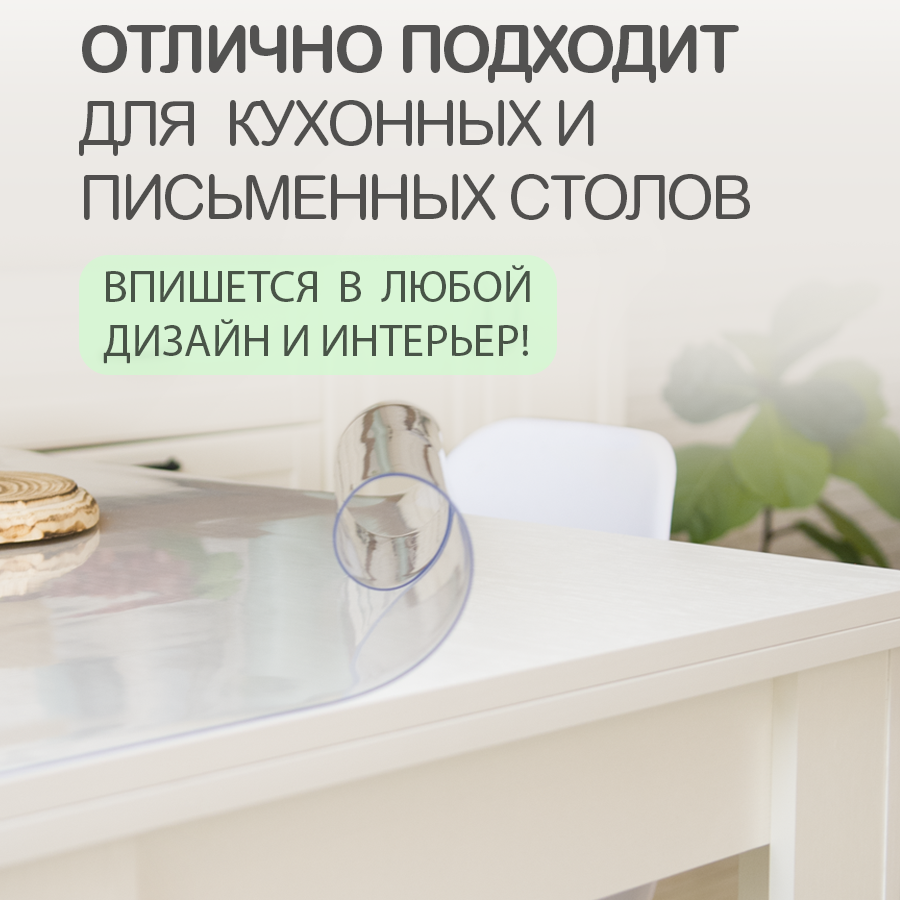 Прозрачная скатерть на стол (гибкое/мягкое стекло) CrystalDesk. Толщина 1 мм. ПВХ скатерть. 80х140 см. Прозрачная.