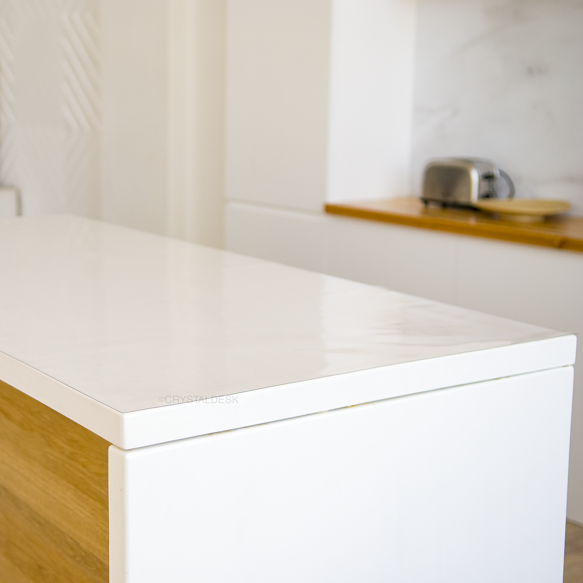 Белая матовая скатерть на стол CrystalDesk 140 80 см. Жидкое гибкое стекло 1.5 мм. Белая мягкая клеенка ПВХ.