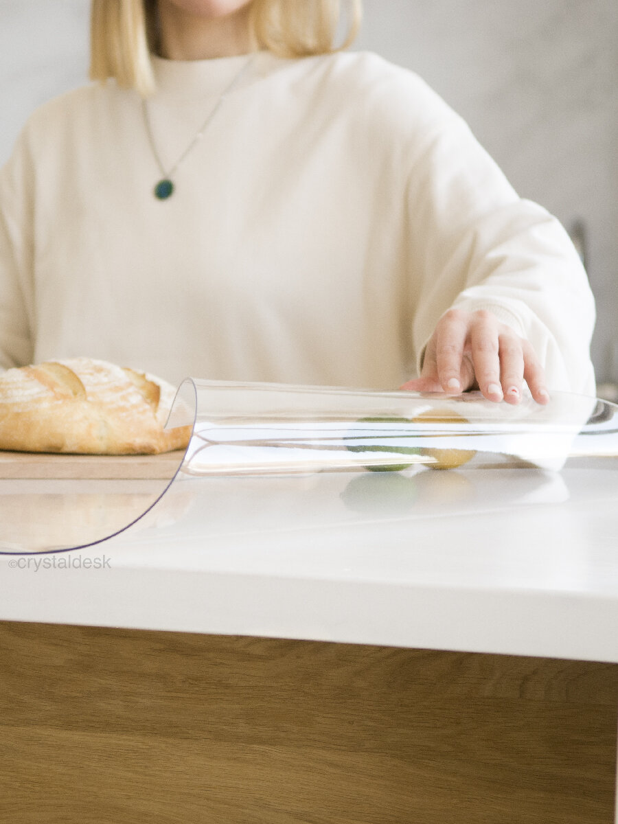 Прозрачная скатерть на стол (гибкое/мягкое стекло) CrystalDesk. Толщина 1 мм. ПВХ скатерть. 70х90 см. Прозрачная.