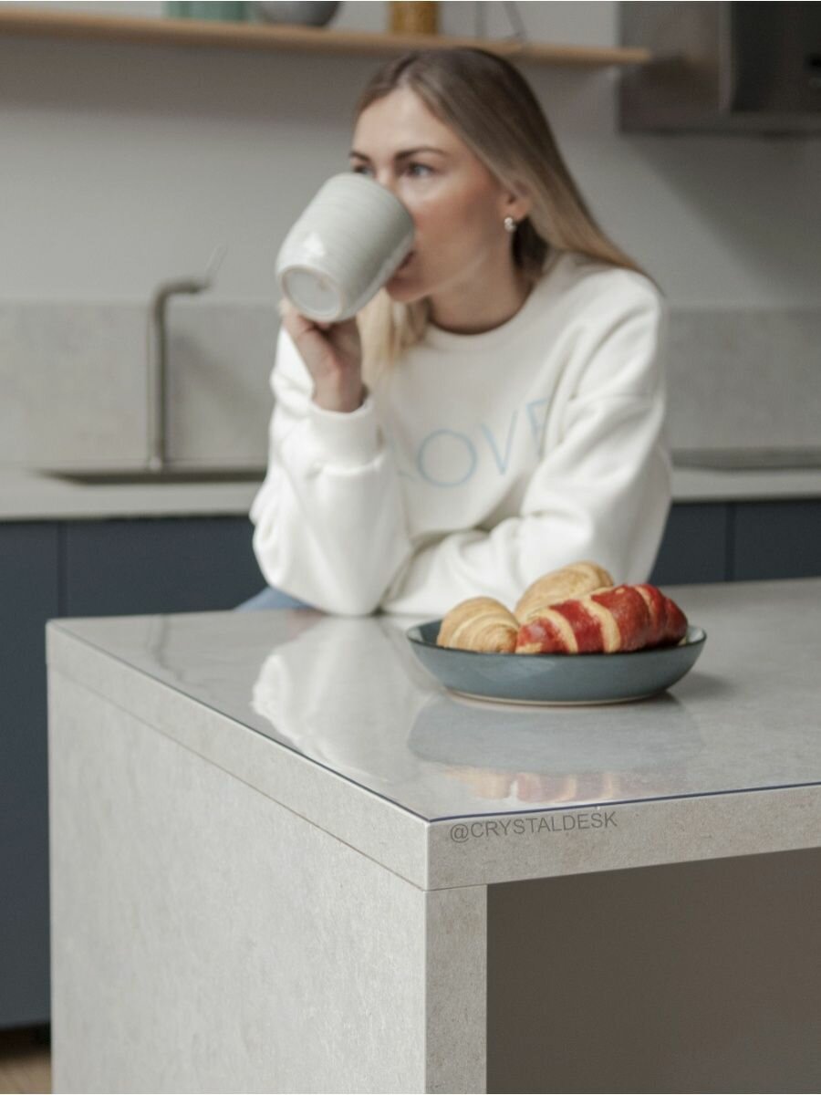 Скатерть на стол CrystalDesk. Гибкое жидкое стекло. Толщина 1 мм. ПВХ скатерть. 70х110 см. Прозрачная.