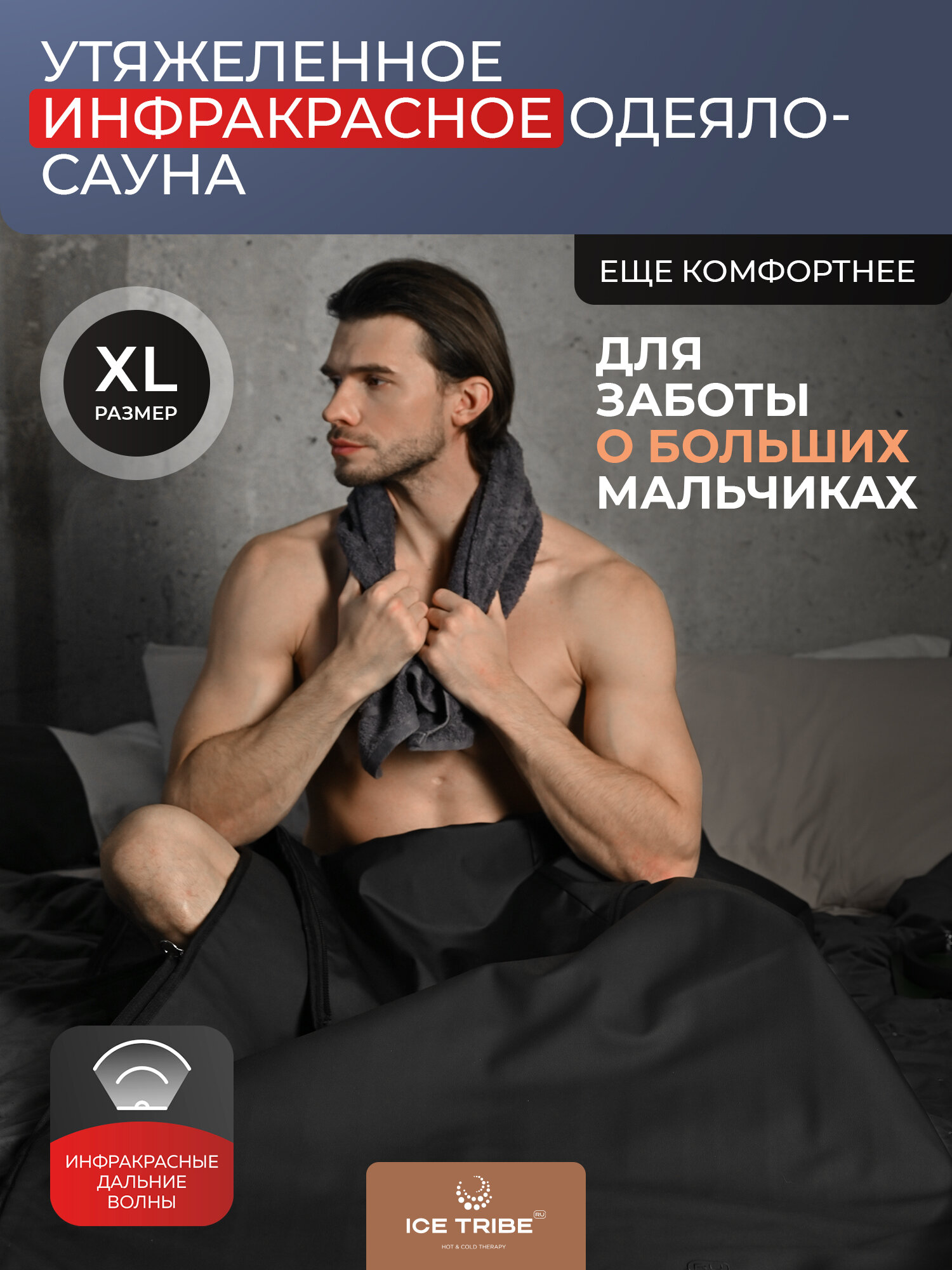 Инфракрасная сауна 25-80 градусов с автоматическим таймером, для двоих, два одеяла кокона в комплекте, Rich Black 180*180 см от ICETRIBE