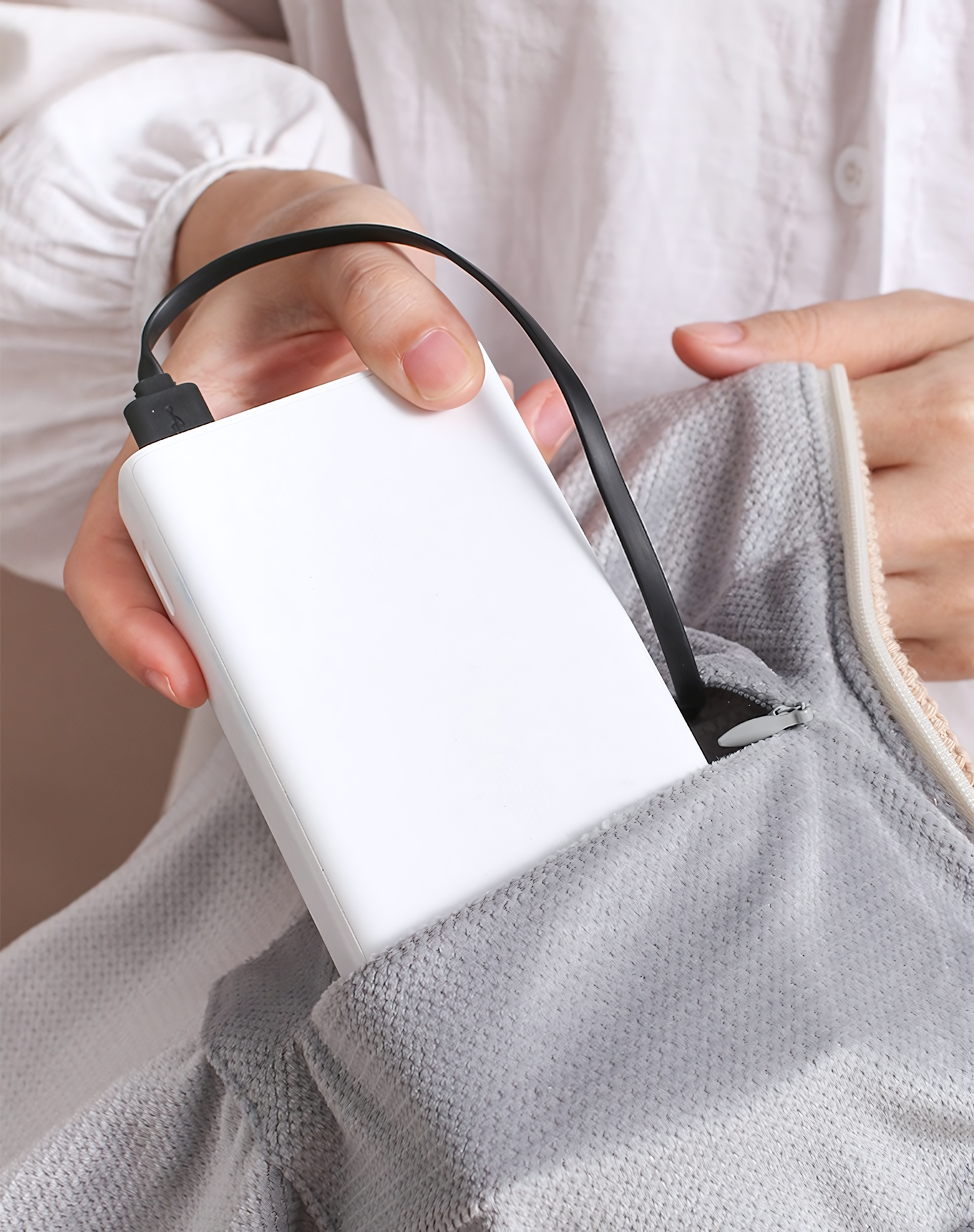 Плед-пончо с электроподогревом / Электроодеяло + блок питания емкостью 5000 мАч, цвет бежевый
