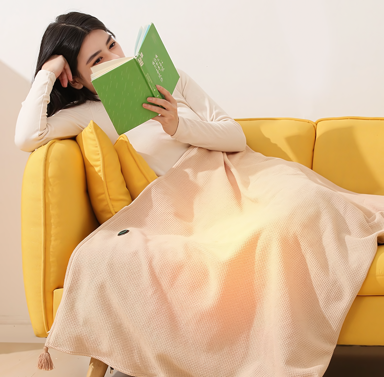 Плед-пончо с электроподогревом / Электроодеяло + блок питания емкостью 5000 мАч, цвет бежевый интересное: