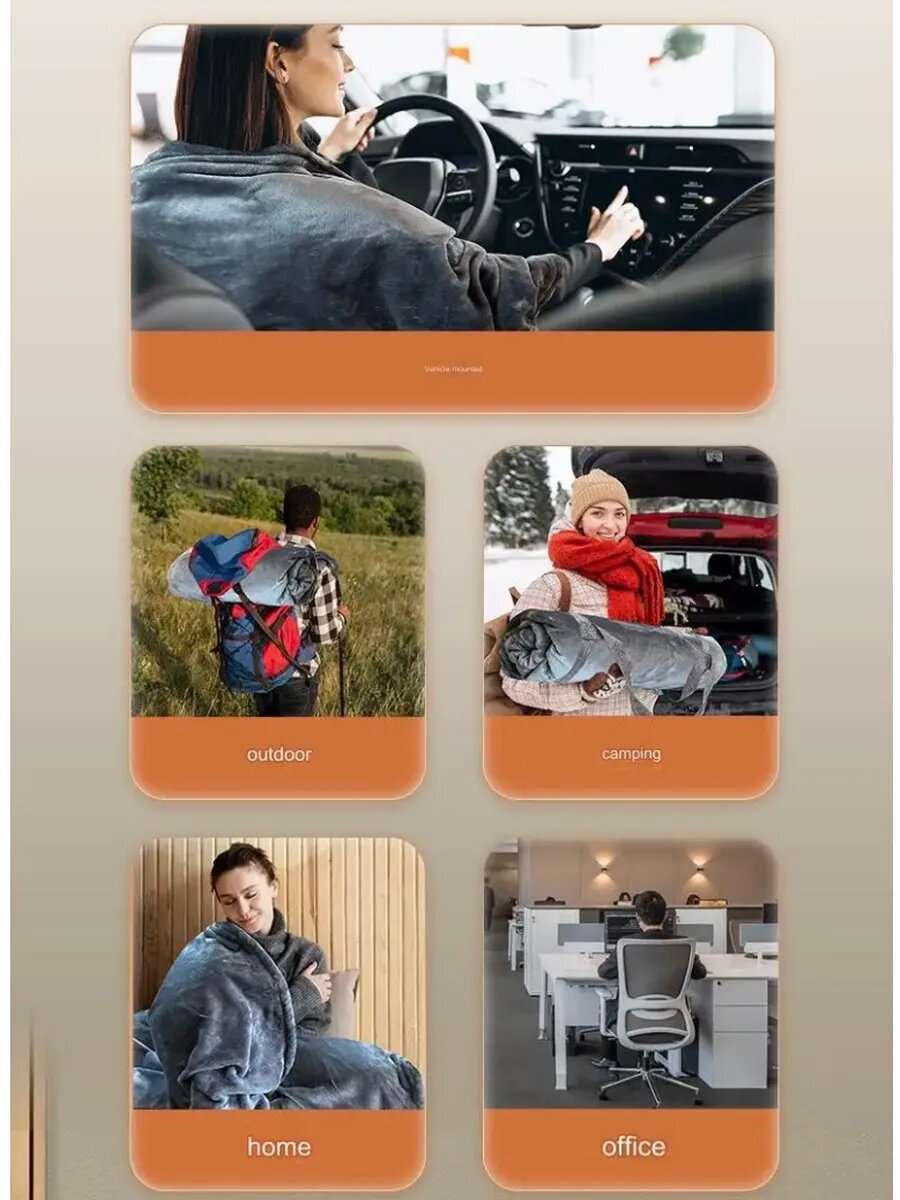 Автомобильное электрическое одеяло Car Electric Blanket 180х70 см с питанием от автоприкуривателя
