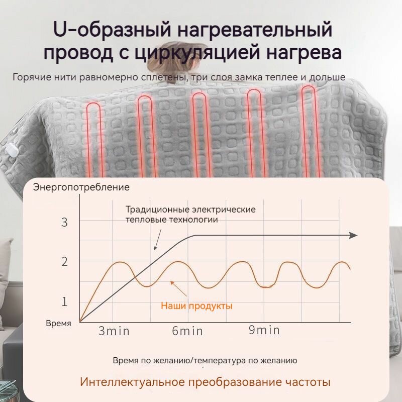 Электроодеяло, 150x90 см, моющееся, защита от перегрева, мощность 85 Вт интересное: