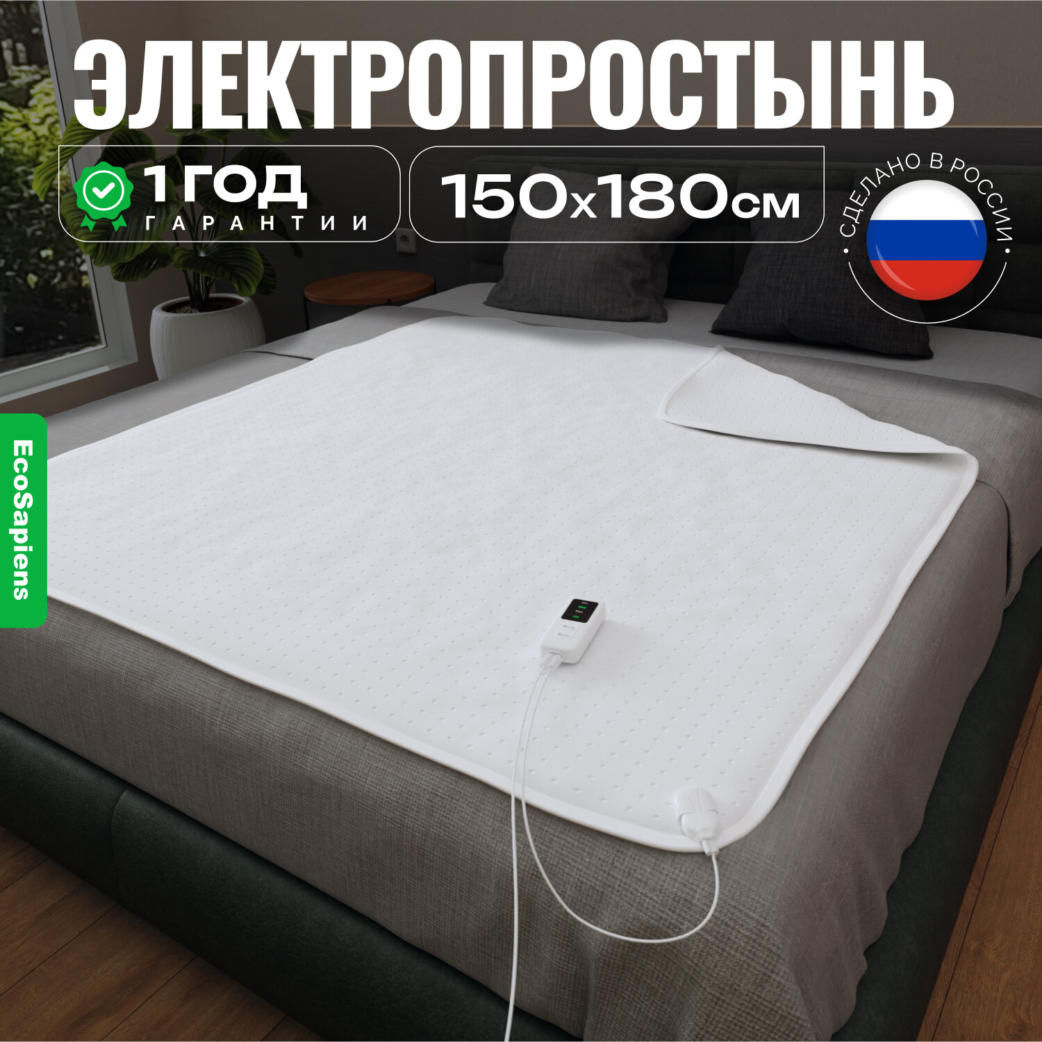Электропростыня двуспальная EcoSapiens Согревай-ка, с подогревом, 3 программы до 8 часов работы, автоотключение, 180х150 см интересное: