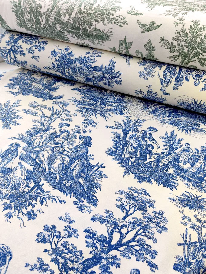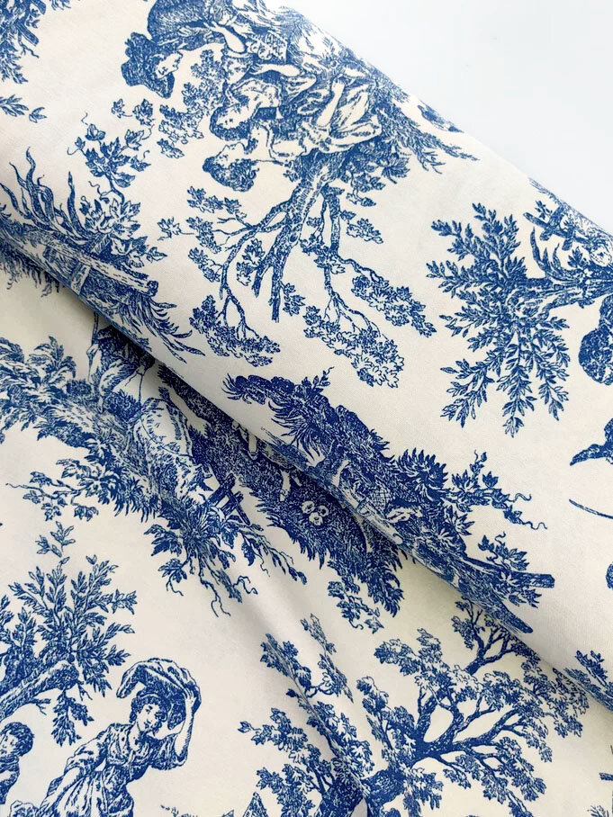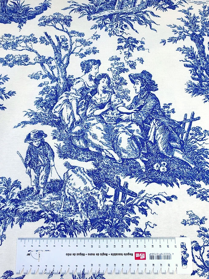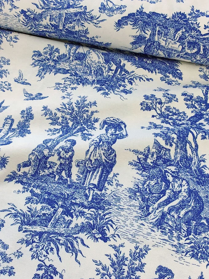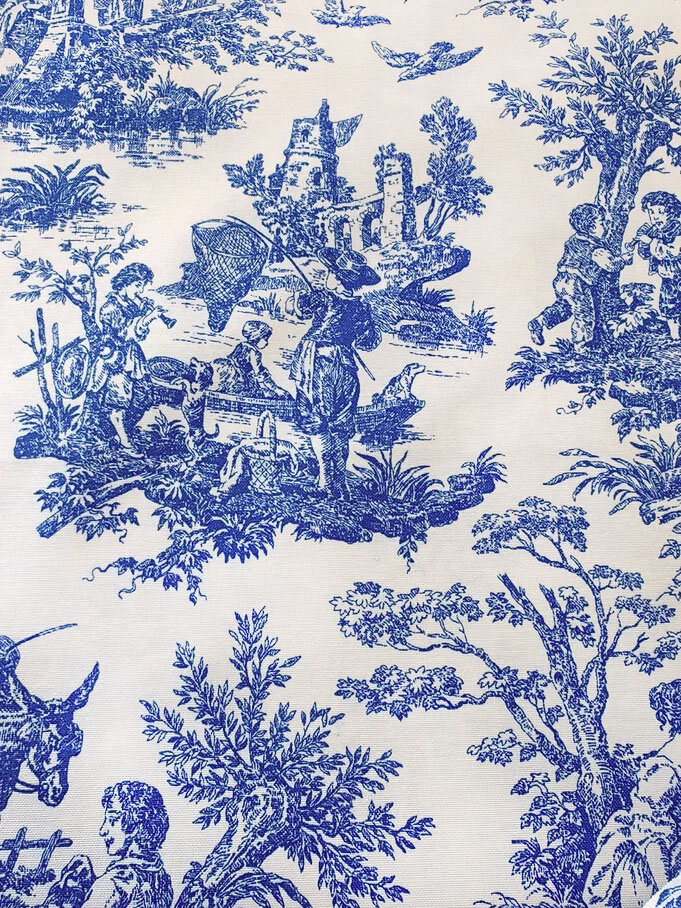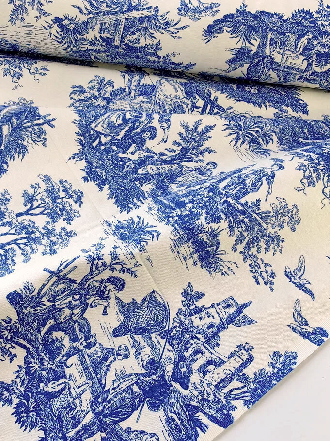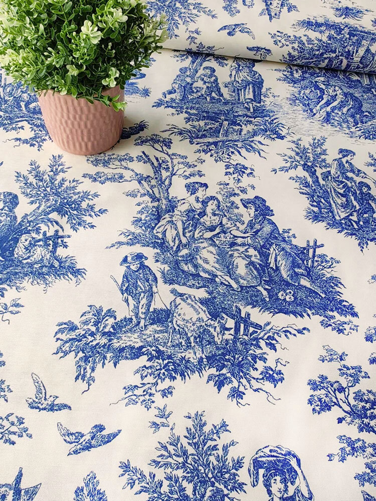 Ткань для шитья Дак Duck, хлопок с водоотталкивающей пропиткой Турция, винтажный рисунок Туаль де Жуи синий, 1 м х 180 см интересное: