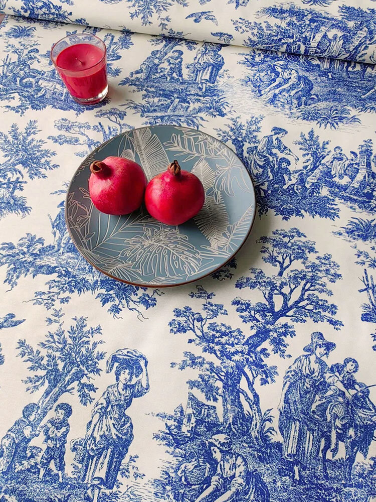 Купить Ткань для шитья Дак Duck, хлопок с водоотталкивающей пропиткой Турция, винтажный рисунок Туаль де Жуи синий, 1 м х 180 см