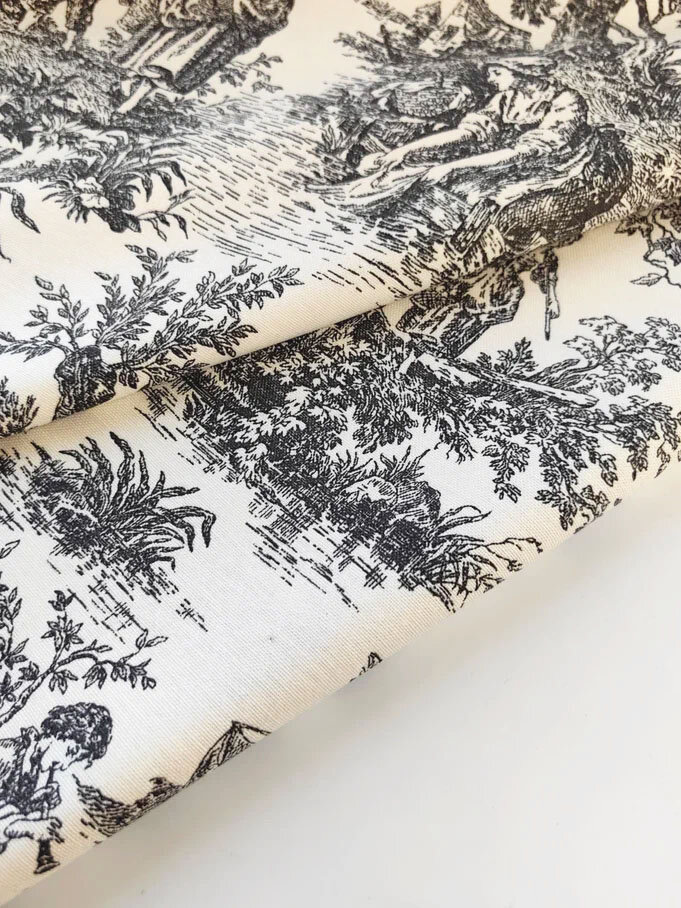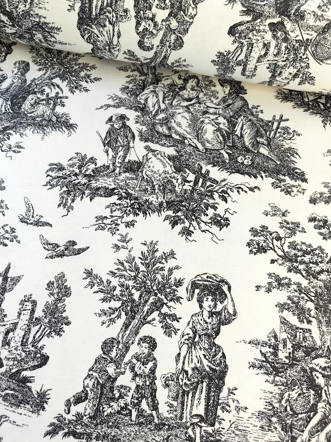 Ткань для шитья Дак Duck, хлопок с водоотталкивающей пропиткой Турция, винтажный рисунок Туаль де Жуи черный, 1 м х 180 см интересное: