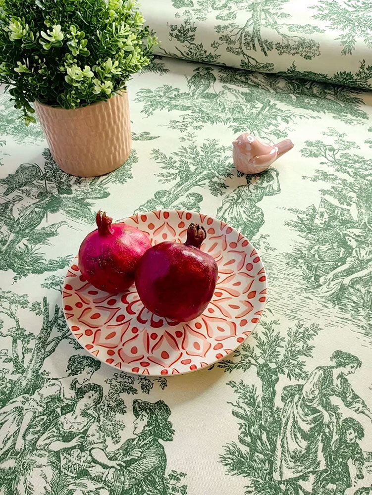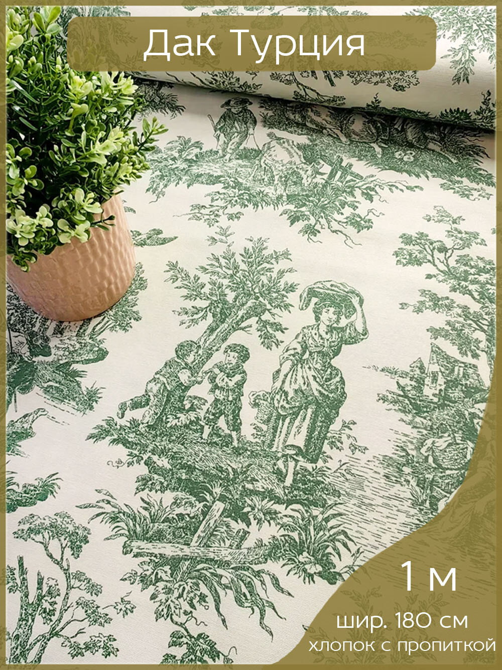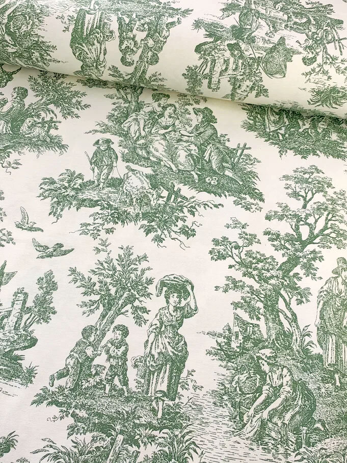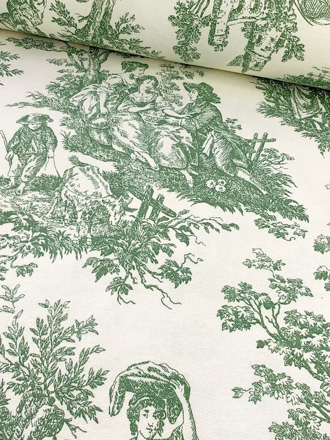 Ткань для шитья Дак Duck, хлопок с водоотталкивающей пропиткой Турция, винтажный рисунок Туаль де Жуи зеленый, 1 м х 180 см интересное: