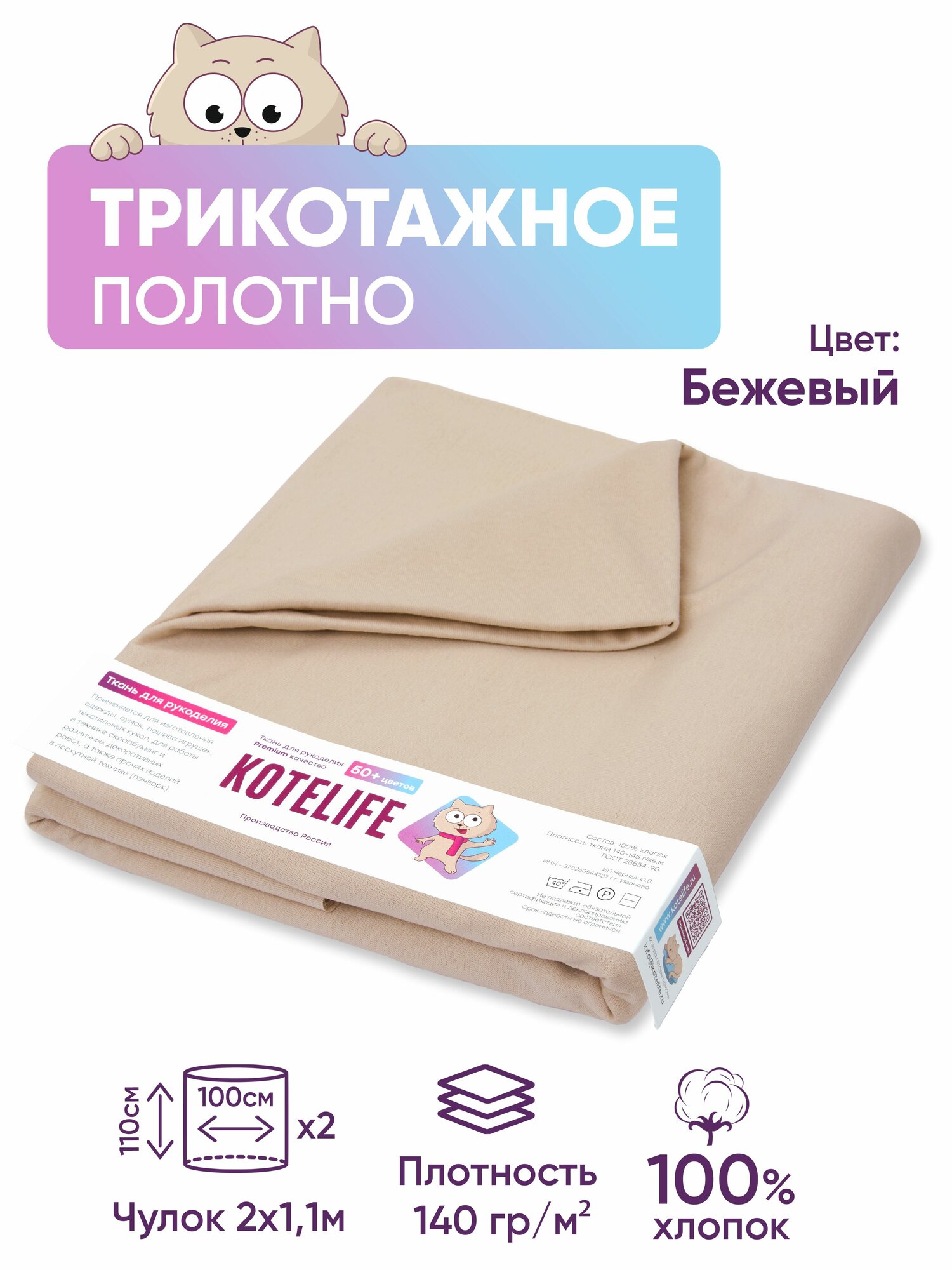 Купить Ткань для рукоделия трикотаж кулирка однотонная, хлопок 100% отрез 1.1м х 2м, цвет Бежевый
