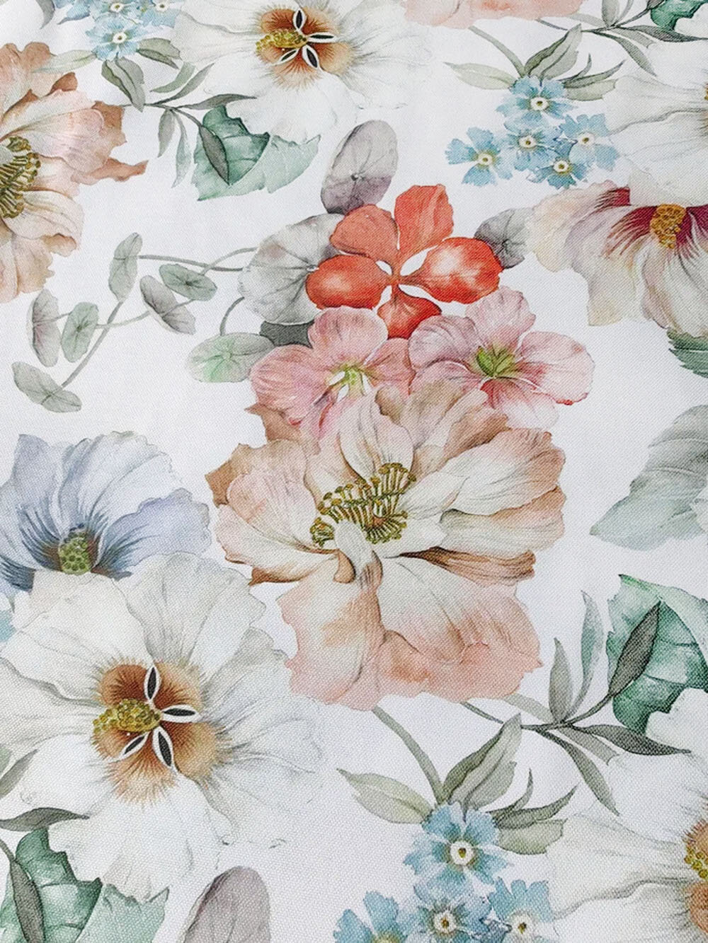 Купить Ткань для шитья Дак Duck, хлопок с водоотталкивающей пропиткой Турция, digital печать крупные цветы на белом, 1 м х 180 см