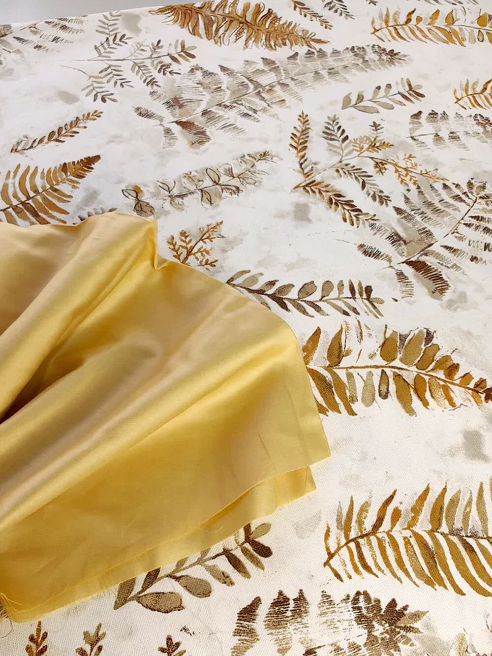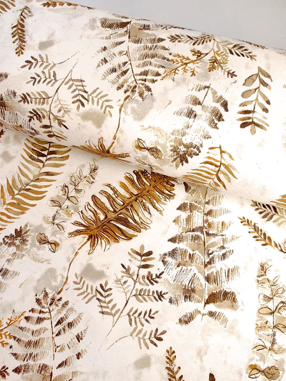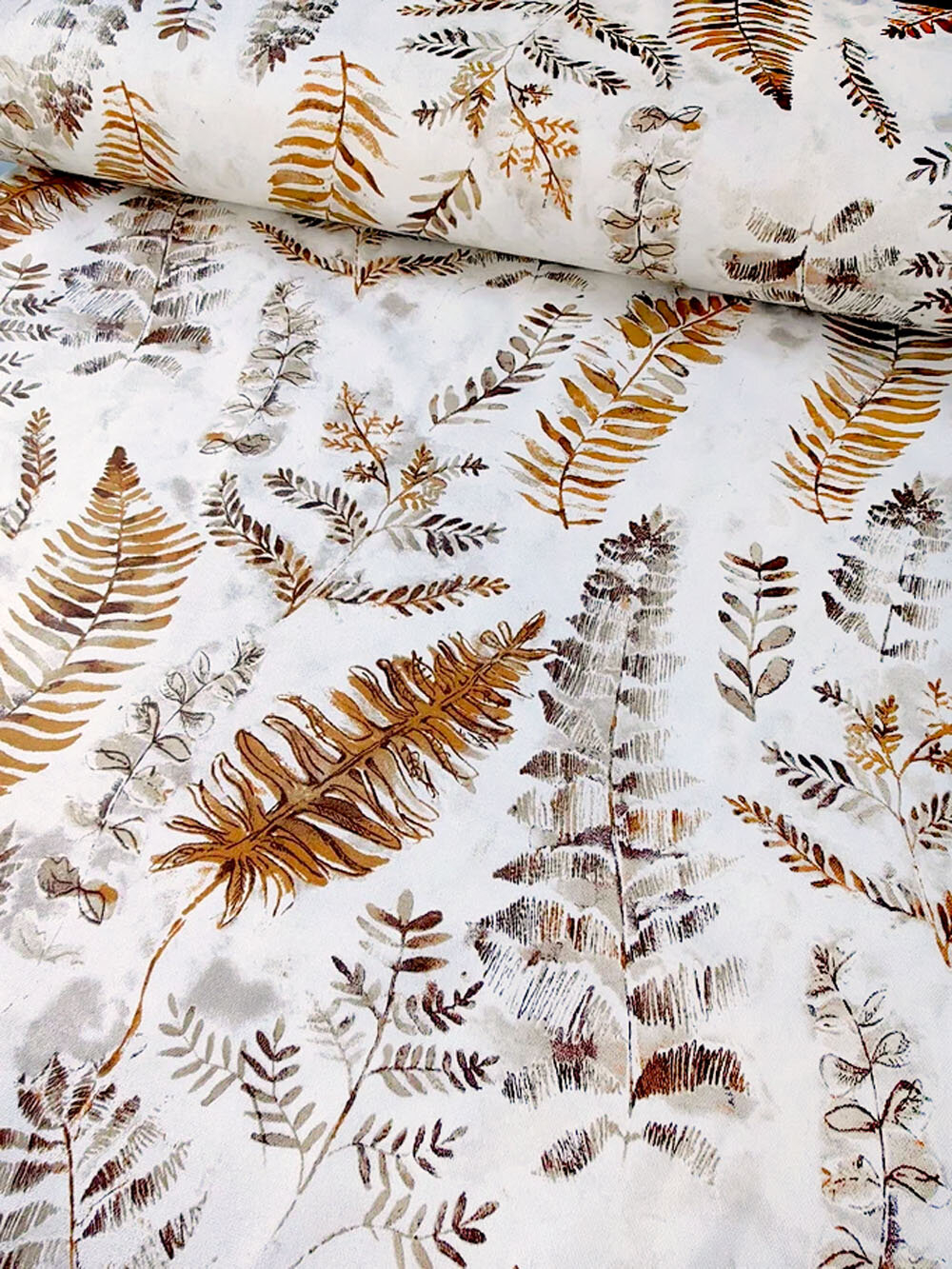 Купить Ткань для шитья Дак Duck, хлопок с водоотталкивающей пропиткой Турция, листья папоротника цвета охра, 1 м х 180 см