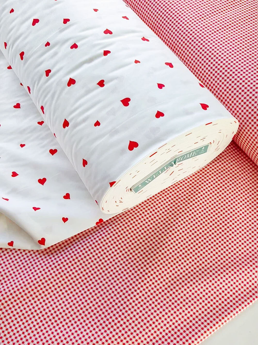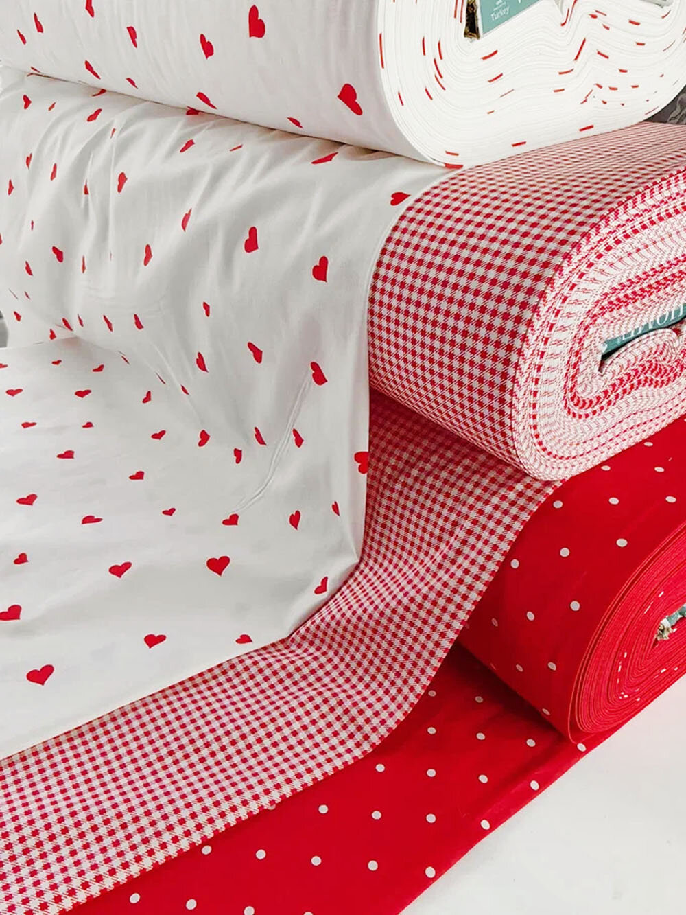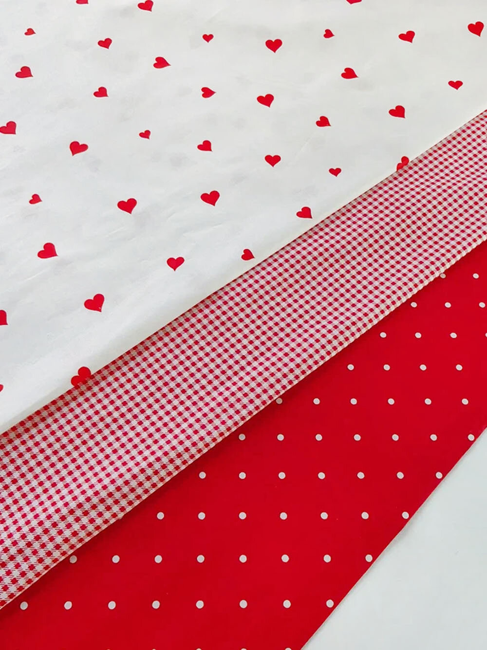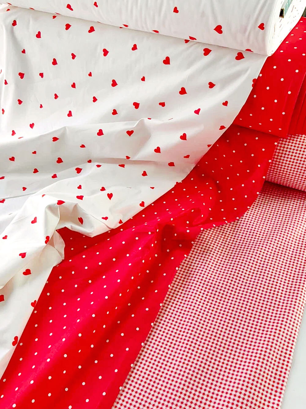 Ткань для шитья, 100 % хлопок поплин Wella Home Турция для домашнего текстиля, белая с красными сердечками, 1 м х 240 см