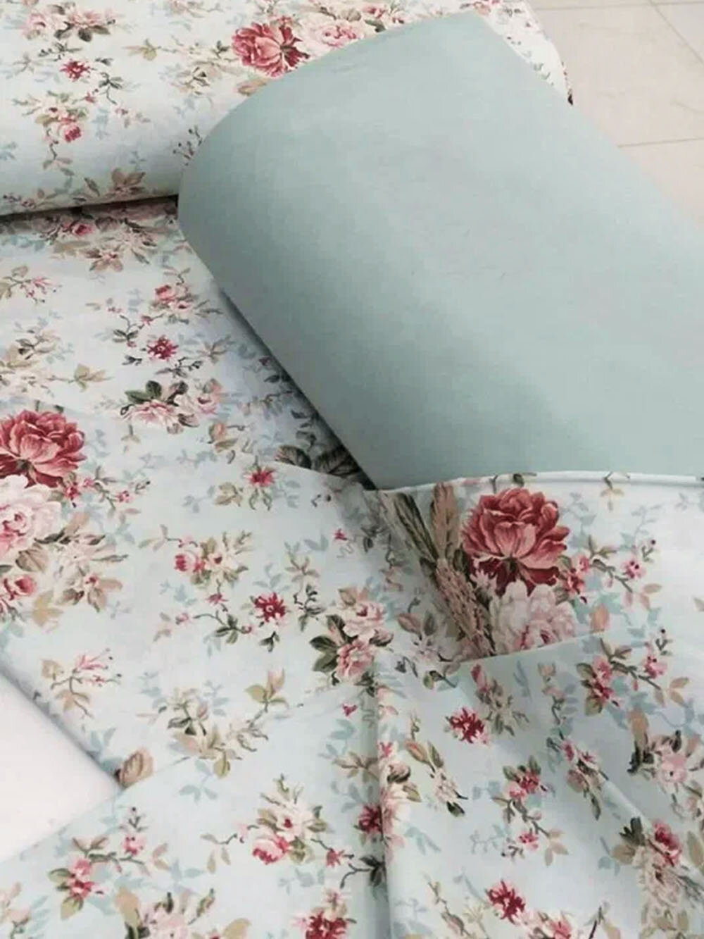Ткань для шитья в стиле Прованс, 100 % хлопок поплин Турция, розы на мятном фоне, 1 м х 240 см