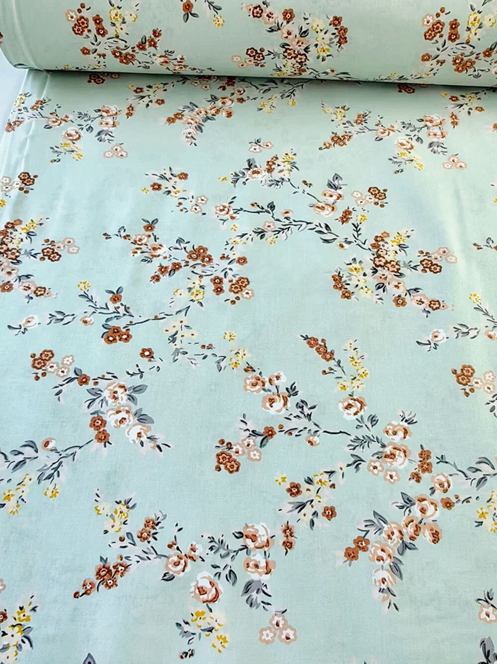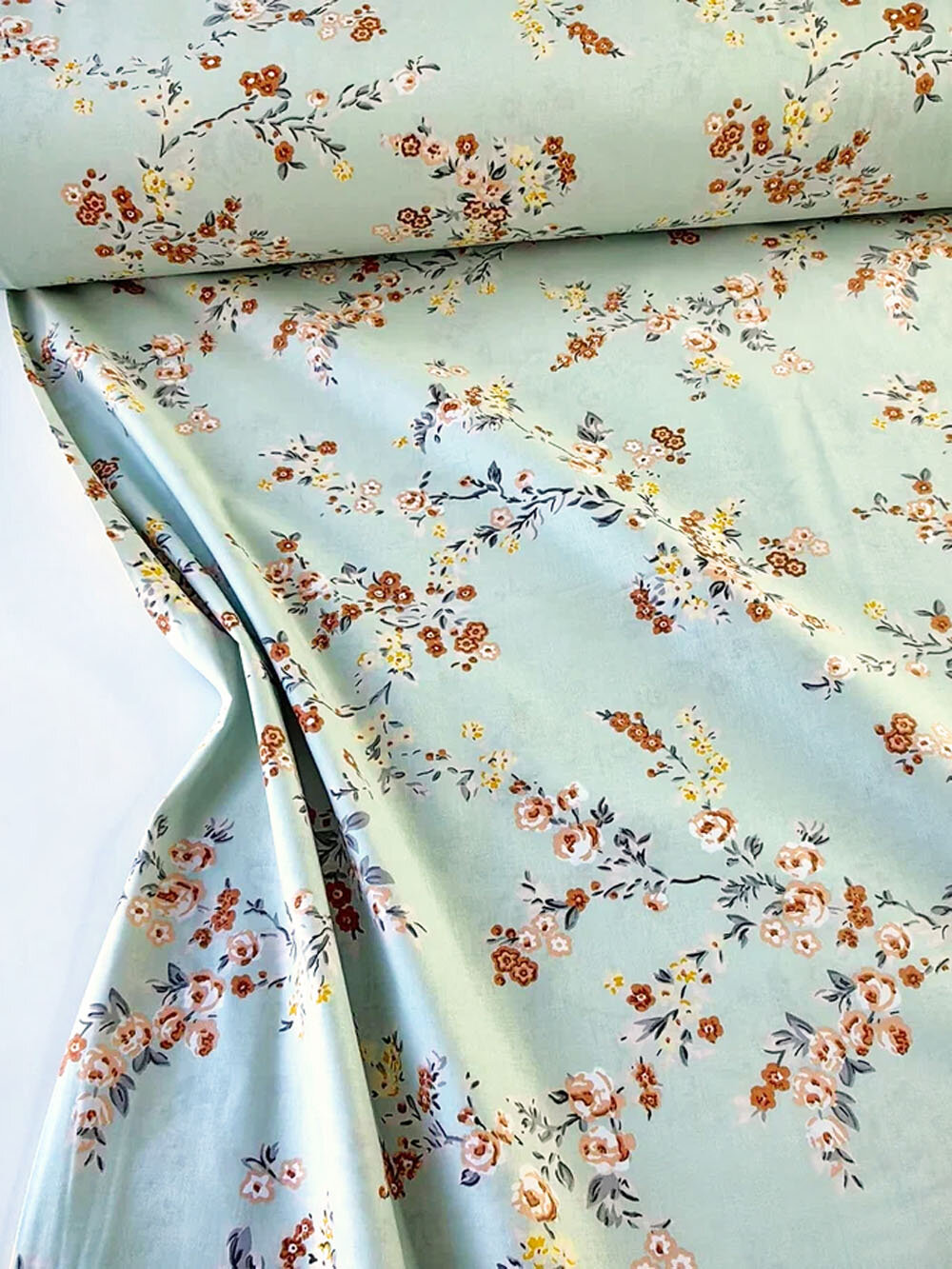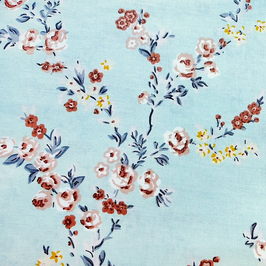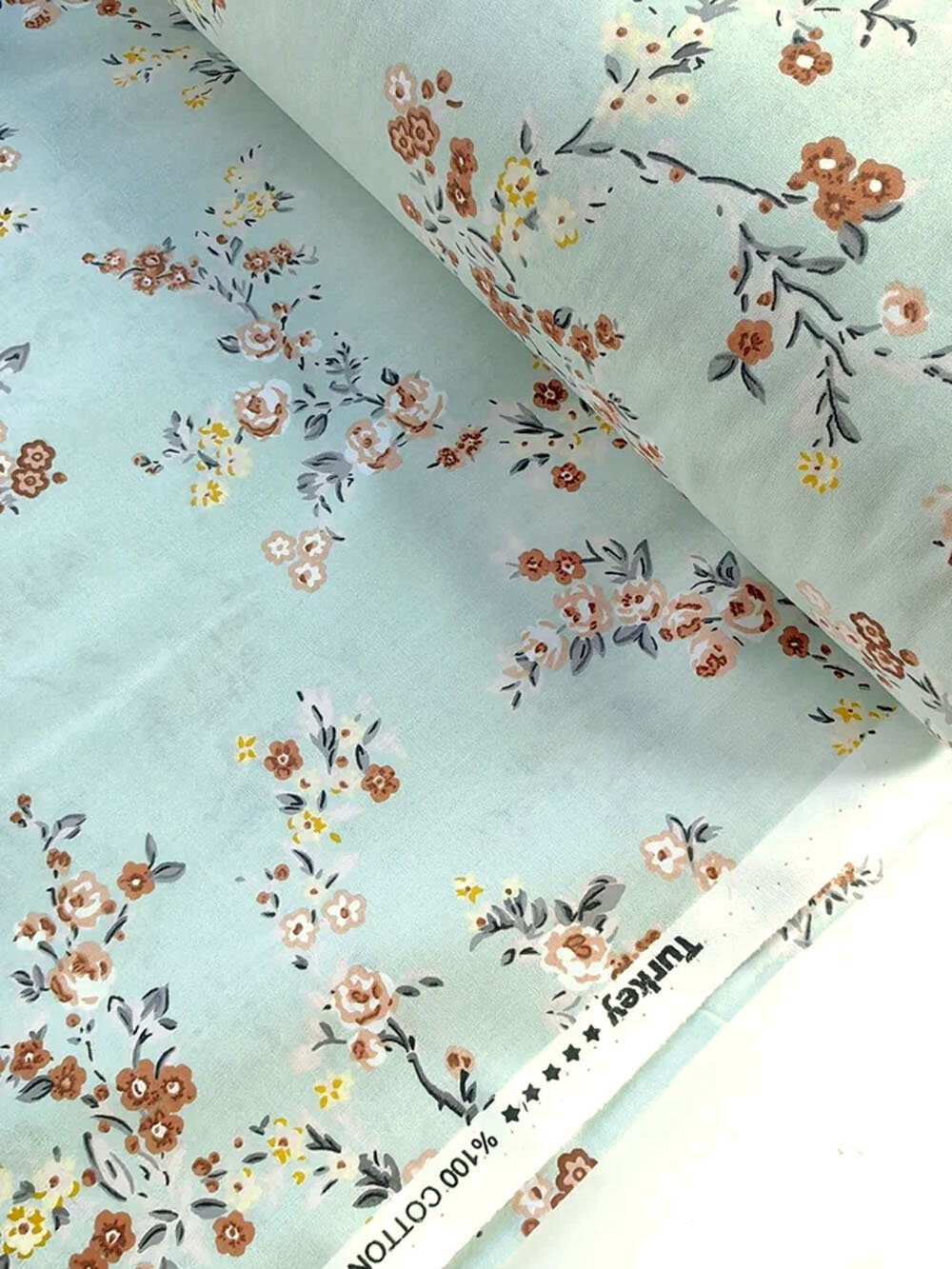 Купить Ткань для шитья в стиле Прованс, 100 % хлопок поплин Турция, цветущие веточки на мятном, 1 м х 240 см