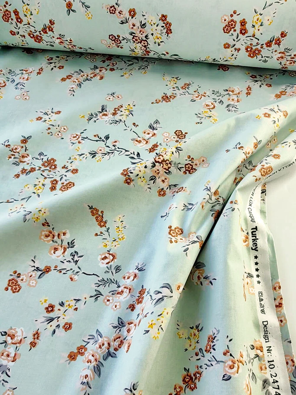 СохранитьТкань для шитья в стиле Прованс, 100 % хлопок поплин Турция, цветущие веточки на мятном, 1 м х 240 см интересное: