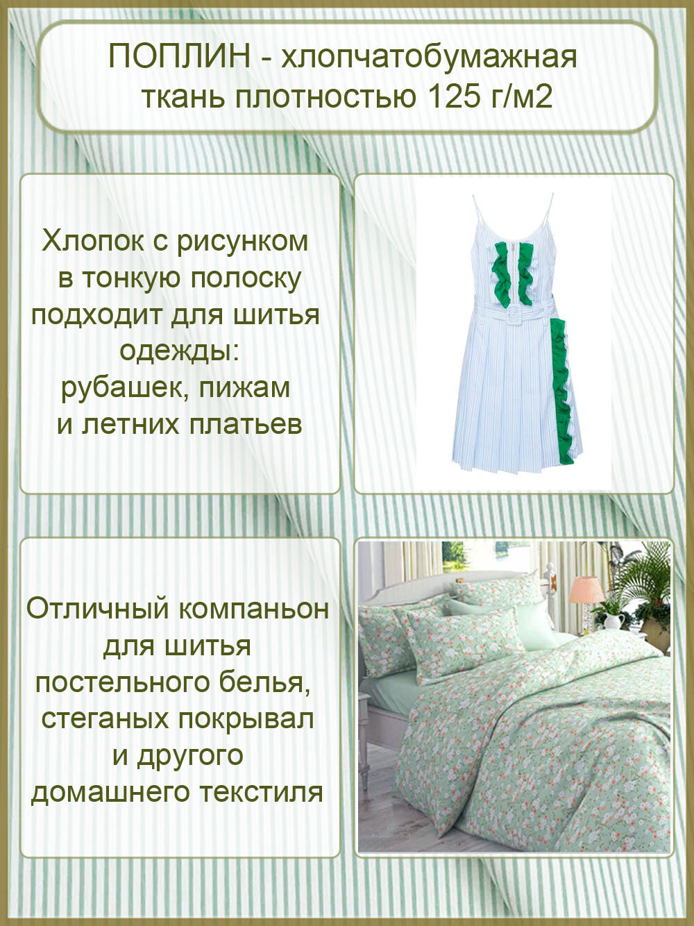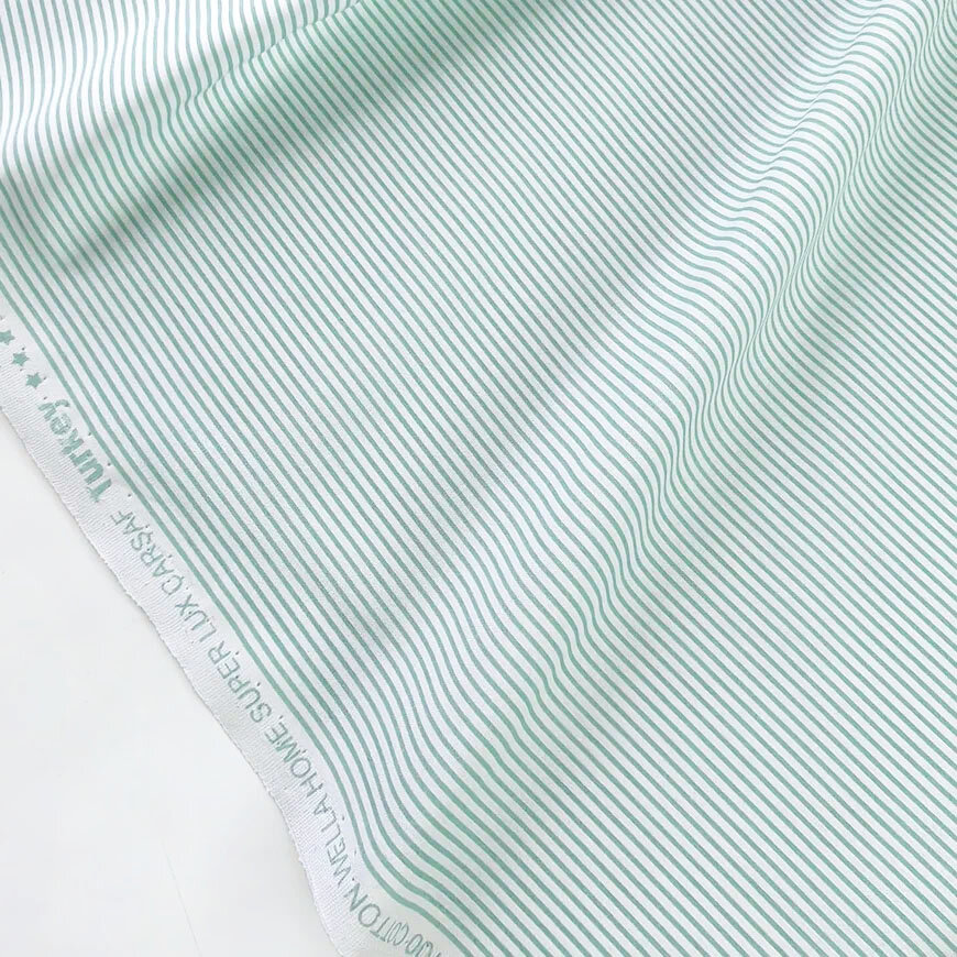 СохранитьТкань для шитья и рукоделия, 100 % хлопок поплин Турция, белый-бирюзовый в полоску, 1 м х 240 см интересное: