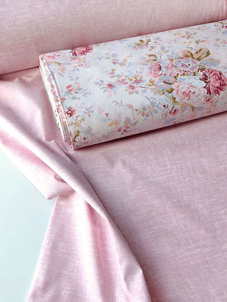 Ткань для шитья в стиле Прованс, 100 % хлопок поплин Турция, цветочки на розовом фоне, 1 м х 240 см