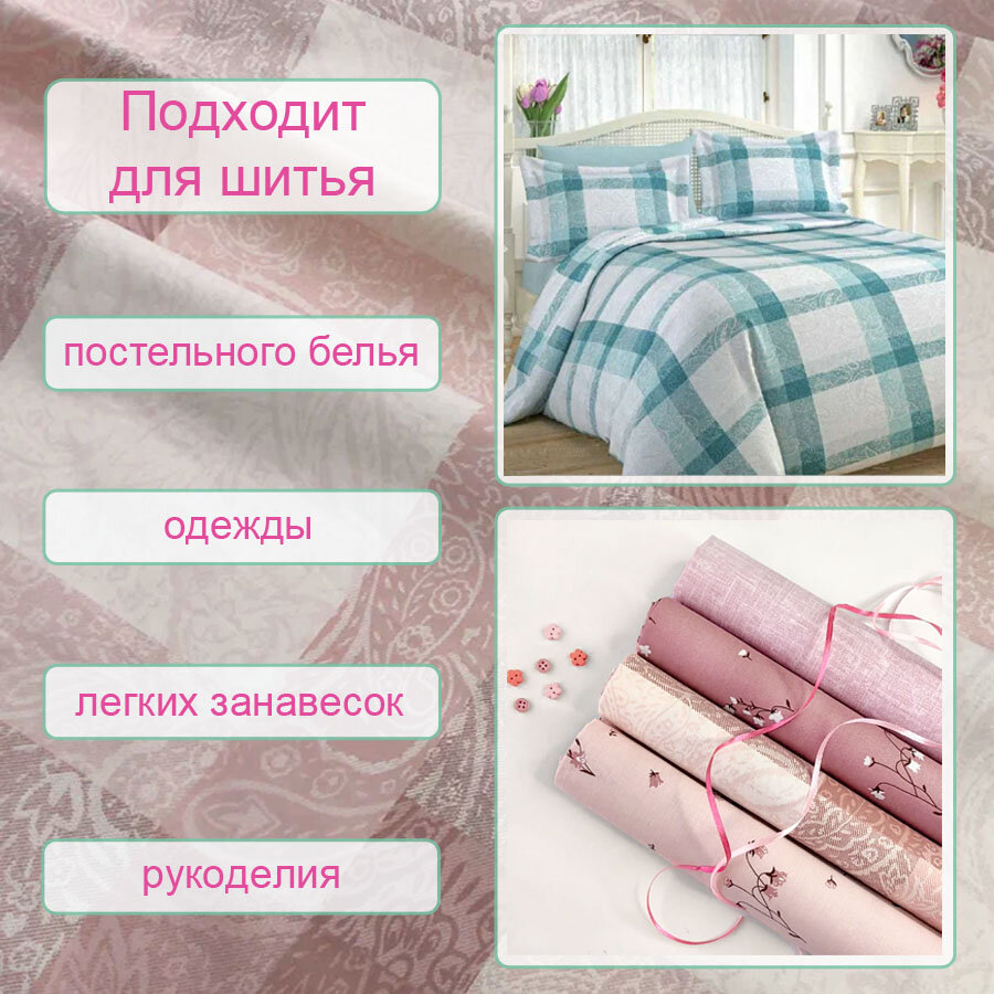 СохранитьТкань для шитья, 100 % хлопок поплин Турция для домашнего текстиля, пудрово-розовый в клетку, 1 м х 240 см интересное: