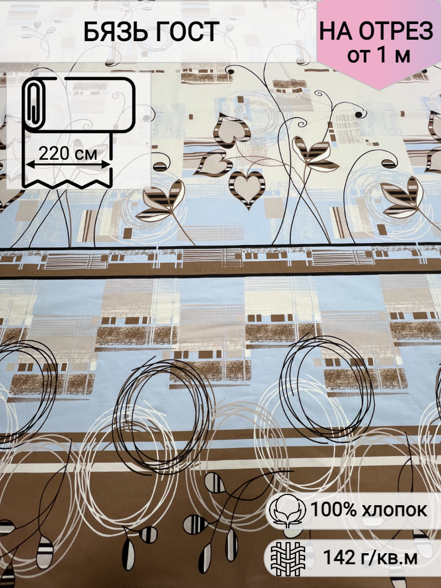 Ткань для шитья постельного белья и рукоделия Бязь ГОСТ, Кофейное Утро, 100% хлопок, плотность 142 г/м2, на отрез интересное: