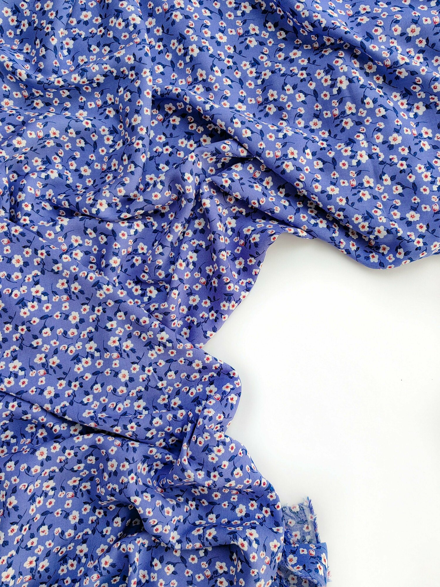 Ткань для шитья блуз, платьев, юбок 100% Вискоза штапель с мелкими цветами на васильковом 100х142 см