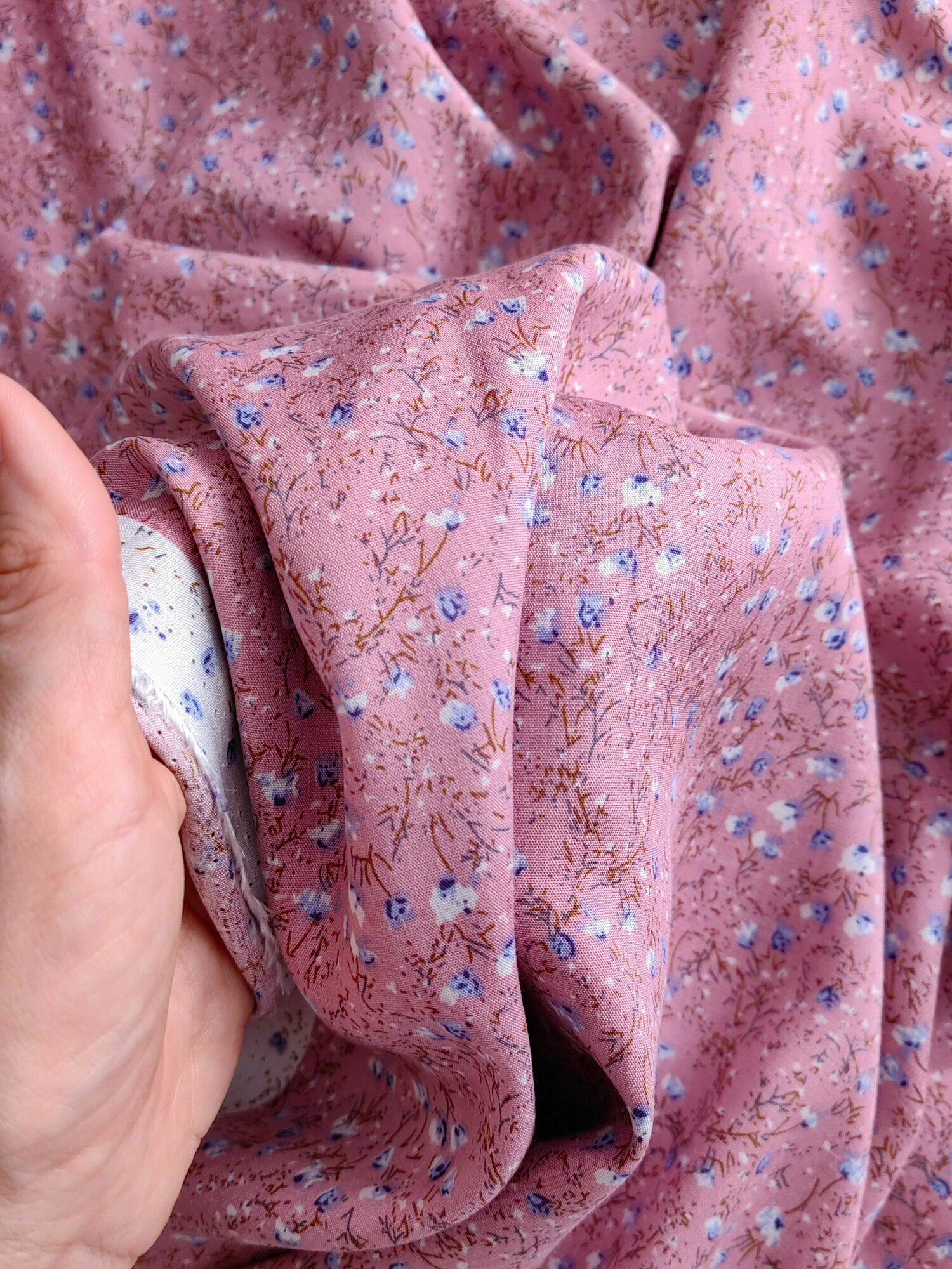 Ткань для шитья блуз, платьев, юбок 100% Вискоза в цветочек пудрово-розовый отрез 1.3м