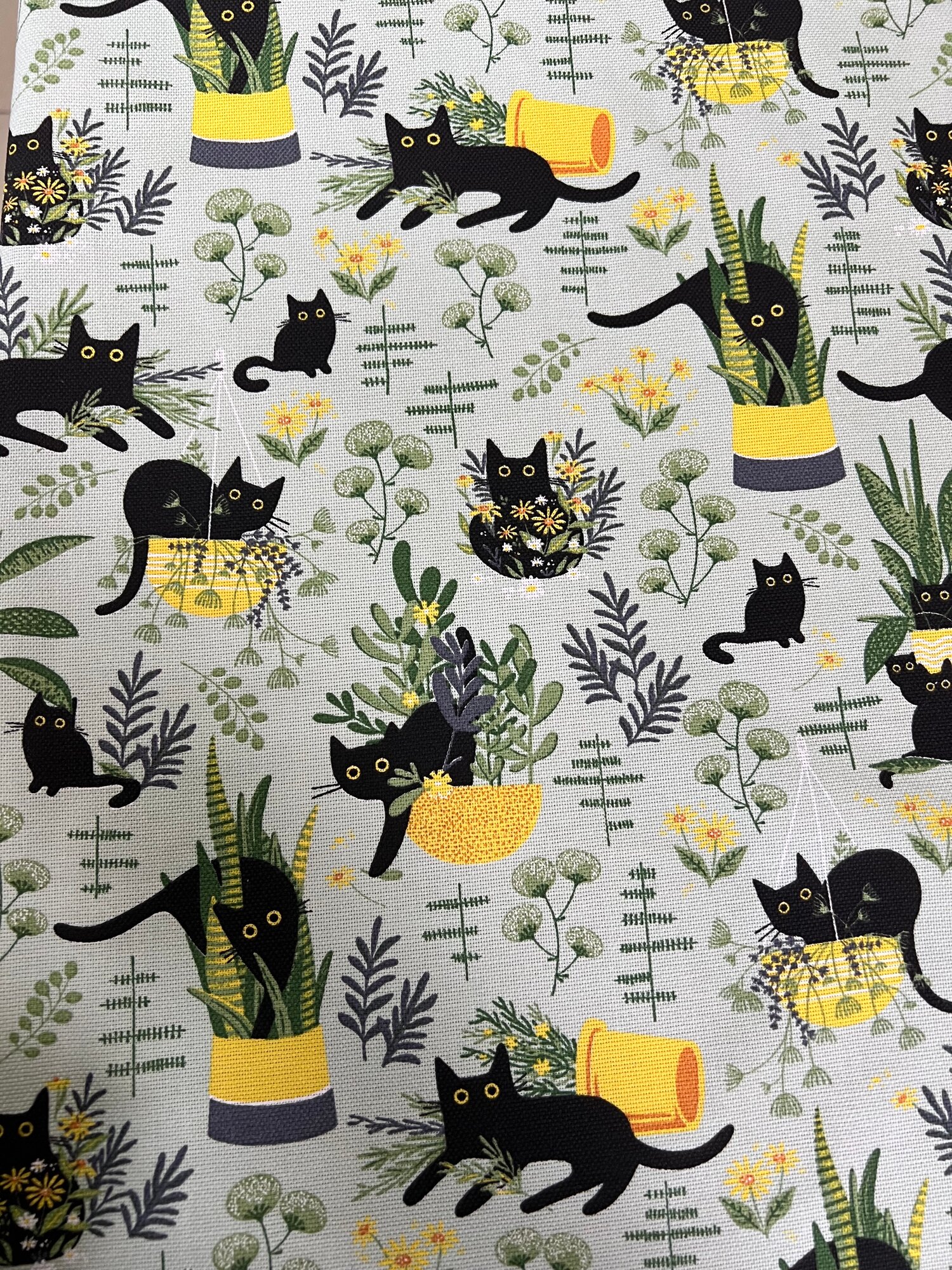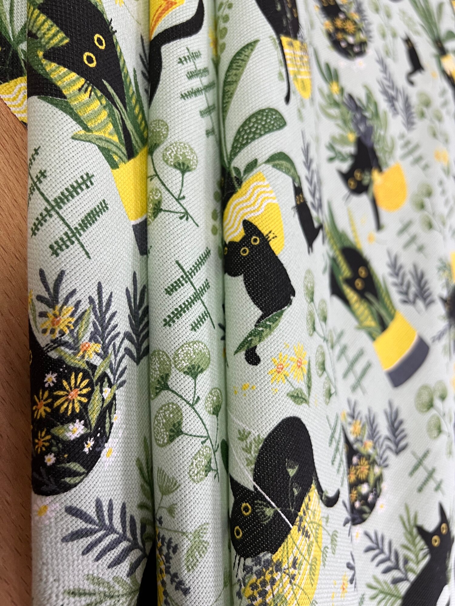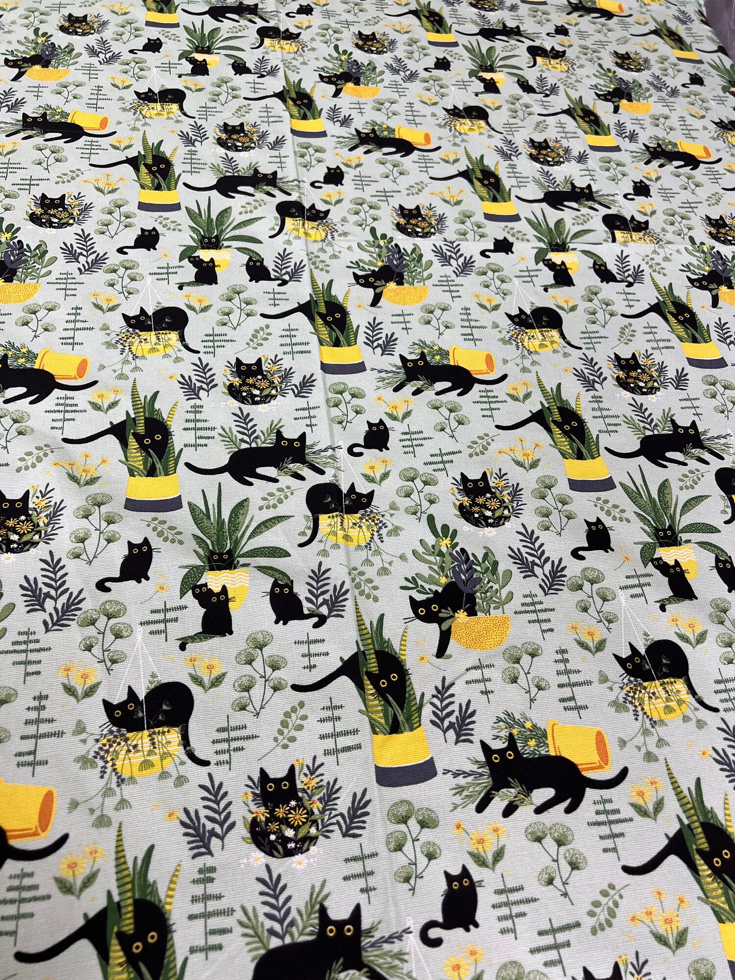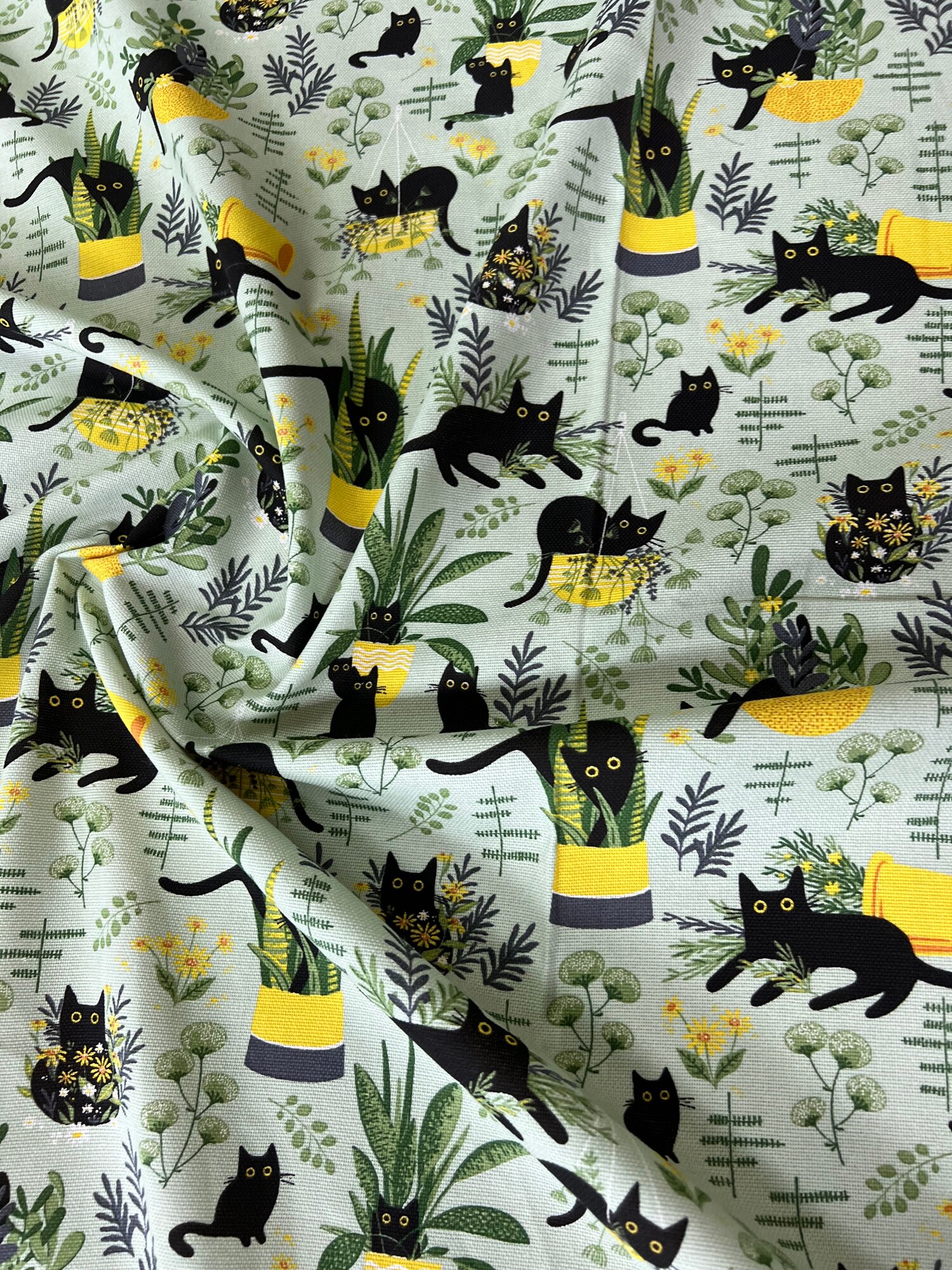 Купить Ткань Рогожка набивная, Кошки на траве, ширина 150 см, светло-зеленая, на отрез