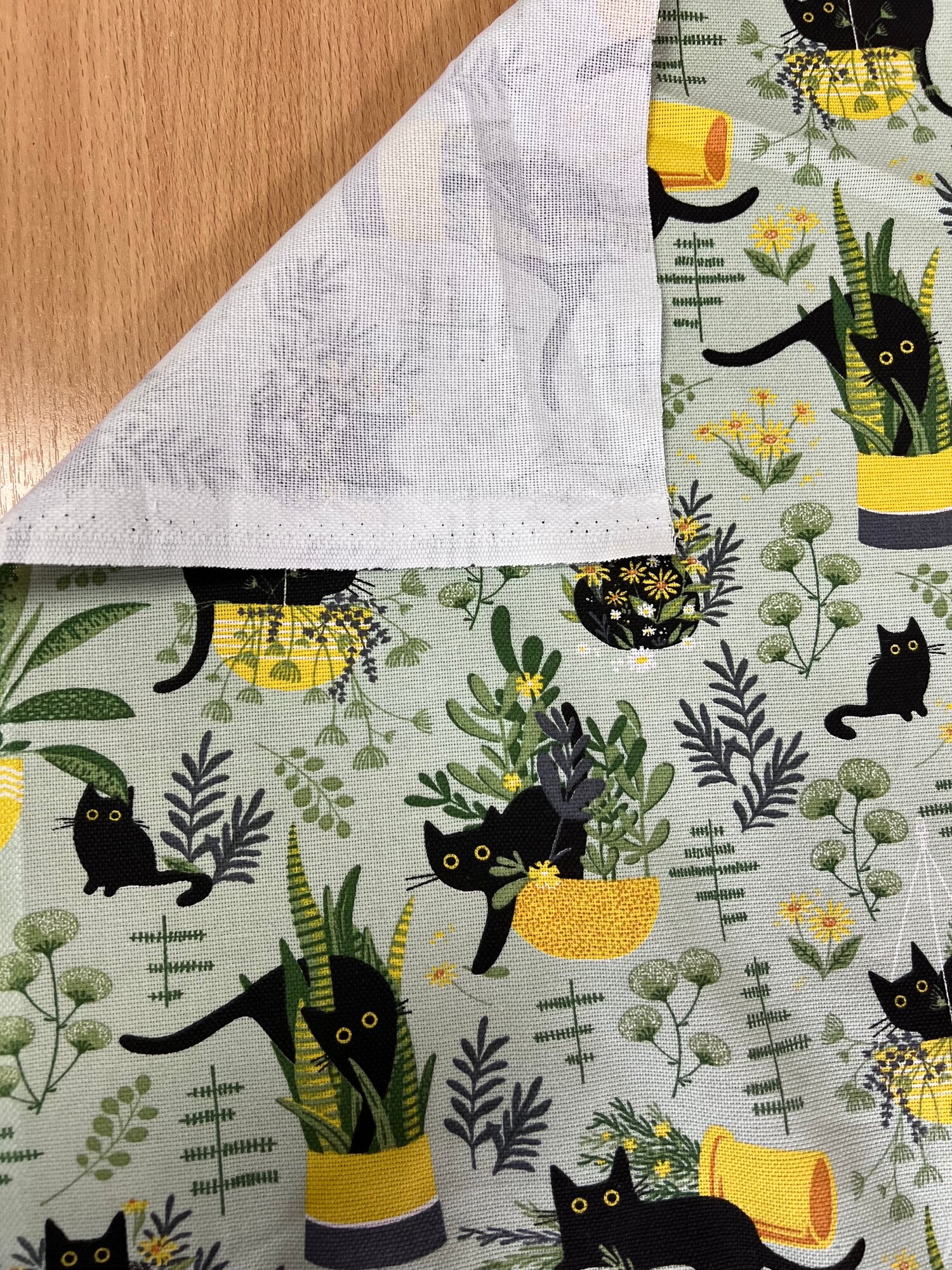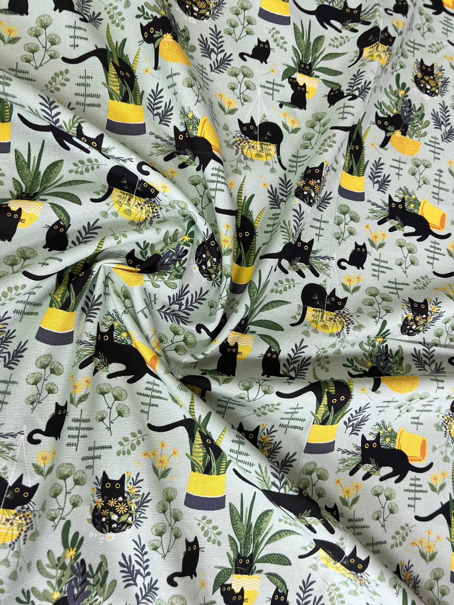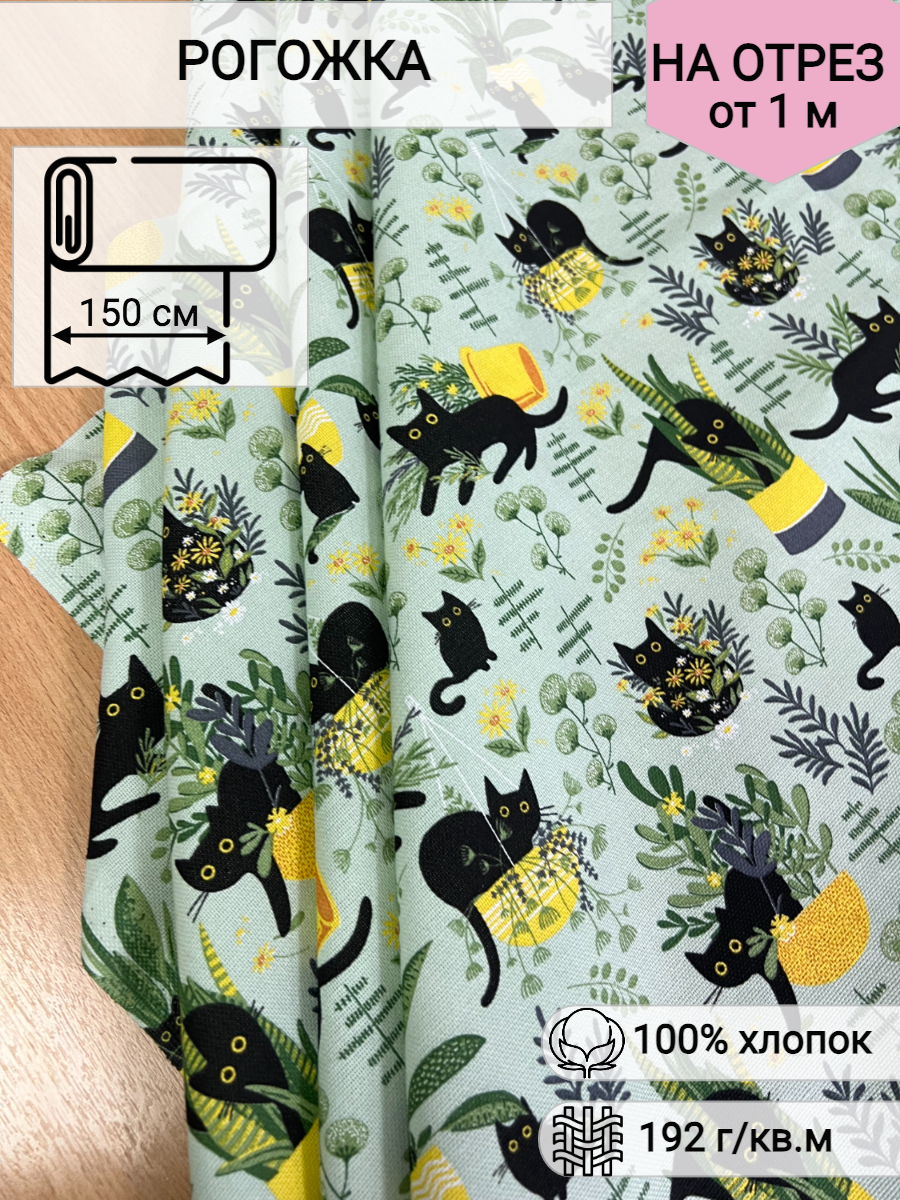 Ткань Рогожка набивная, Кошки на траве, ширина 150 см, светло-зеленая, на отрез интересное: