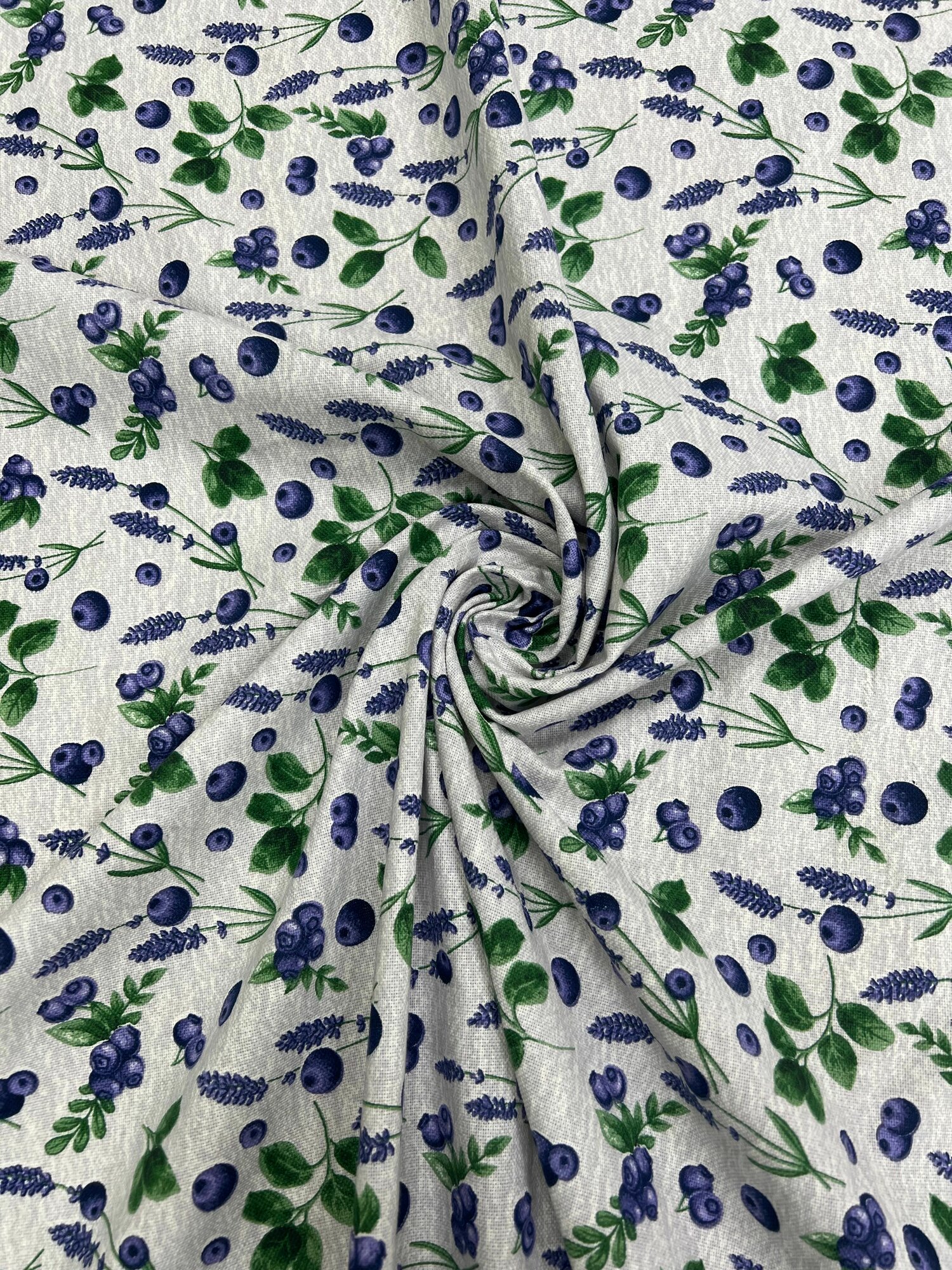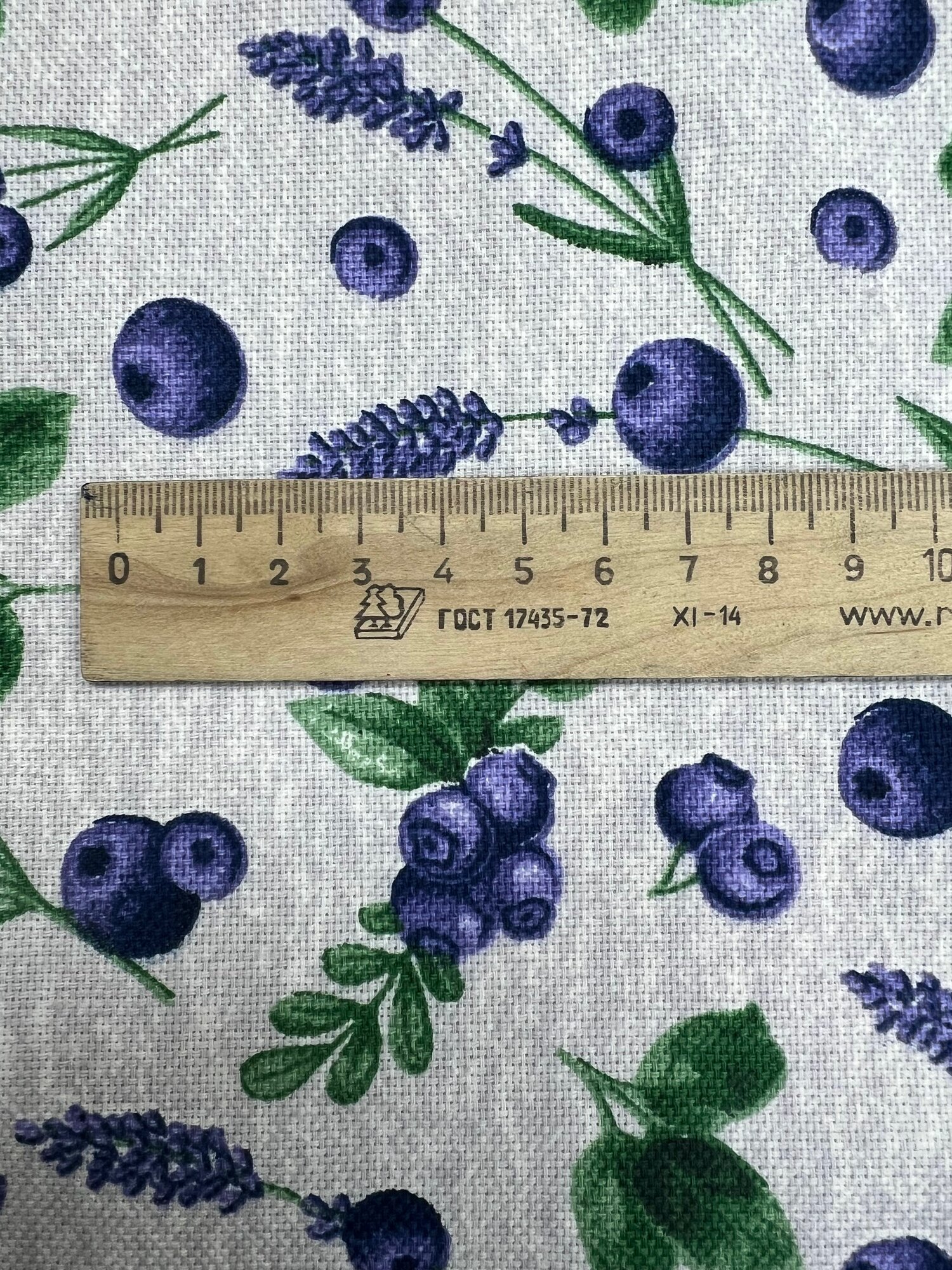 Ткань для шитья, Рогожка набивная, Черника, ширина 150 см, 100% хлопок, светло-серая, на отрез интересное: