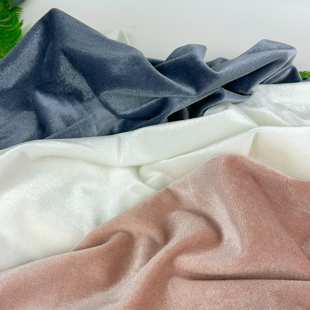 Купить Бархат стрейч ткань для рукоделия, шитья, Серый, Кремовый, Пудровый, набор 3 отреза по 50х50 см