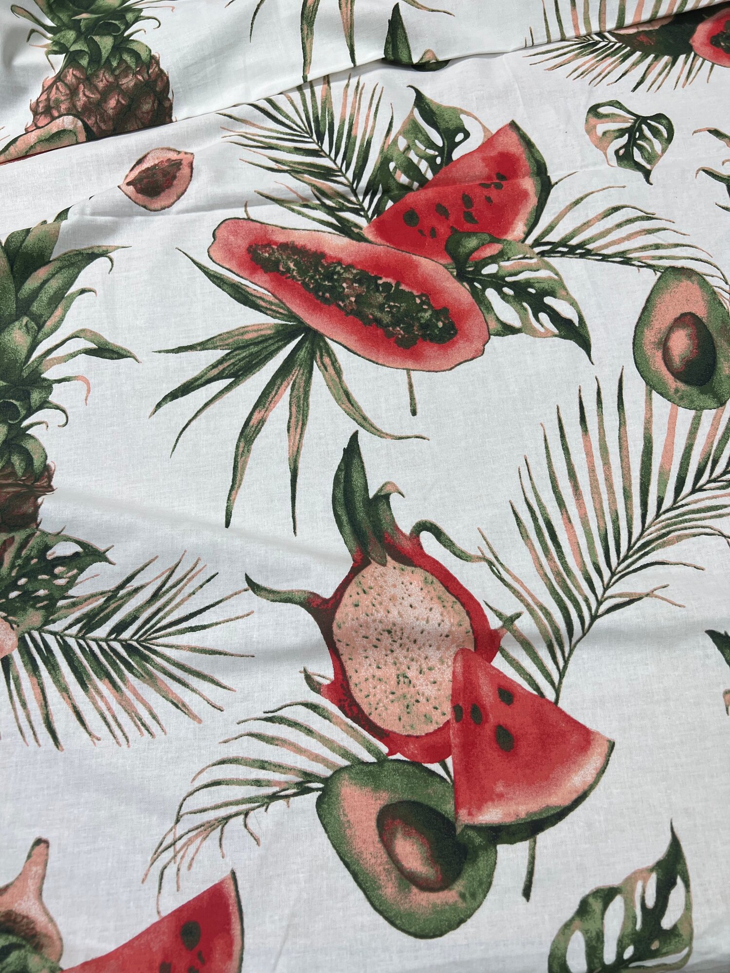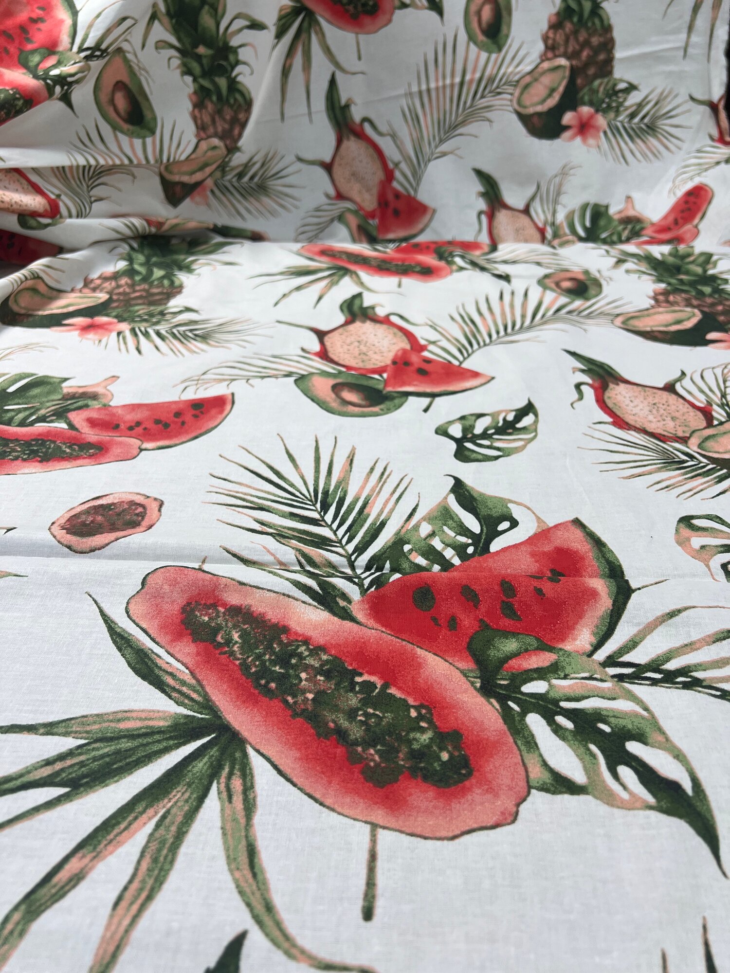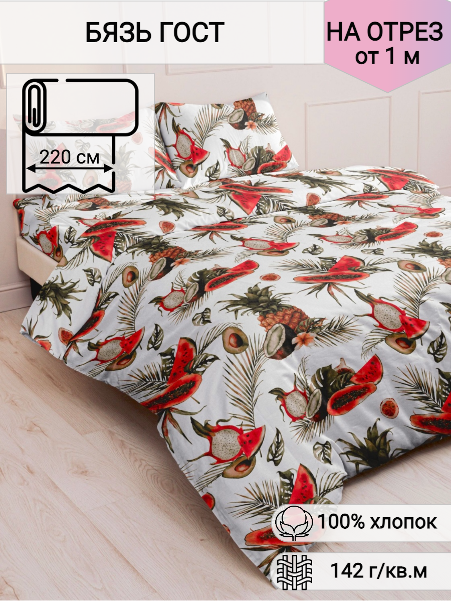 Ткань для шитья постельного белья и рукоделия Бязь ГОСТ, Тропические Фрукты, 100% хлопок, ширина 220 см, плотность 142 г/м2, на отрез интересное: