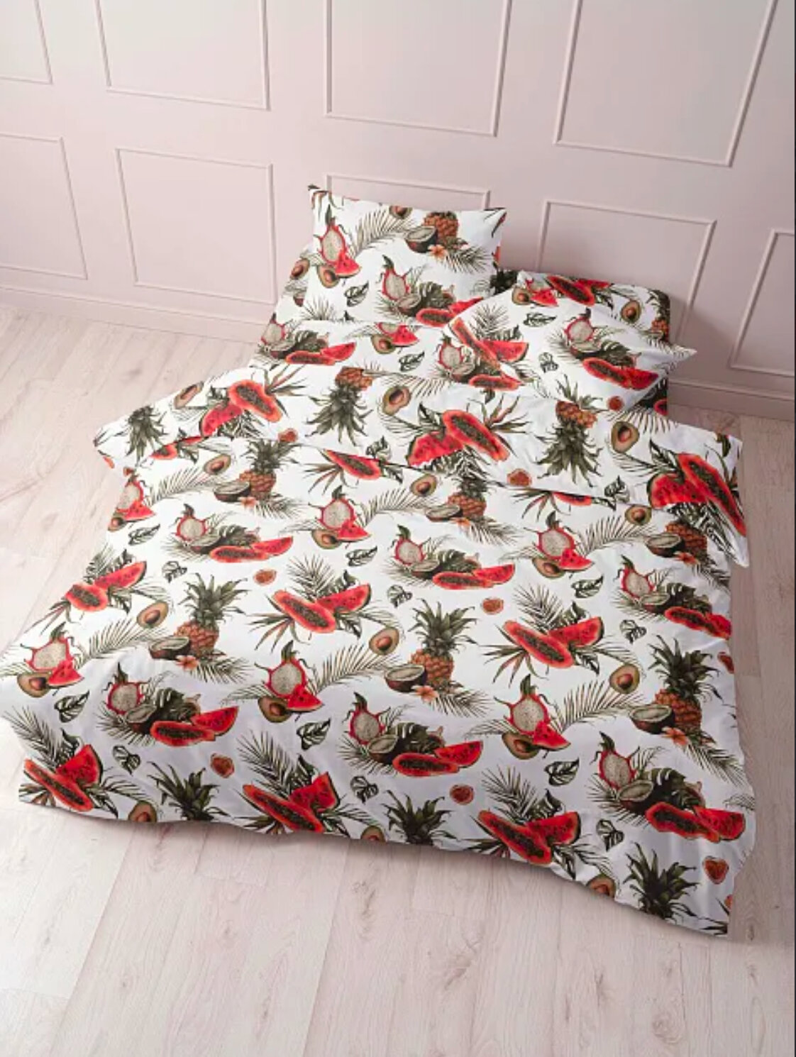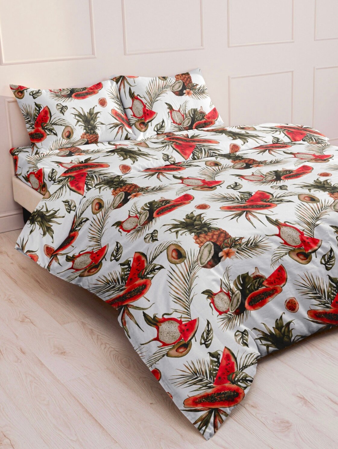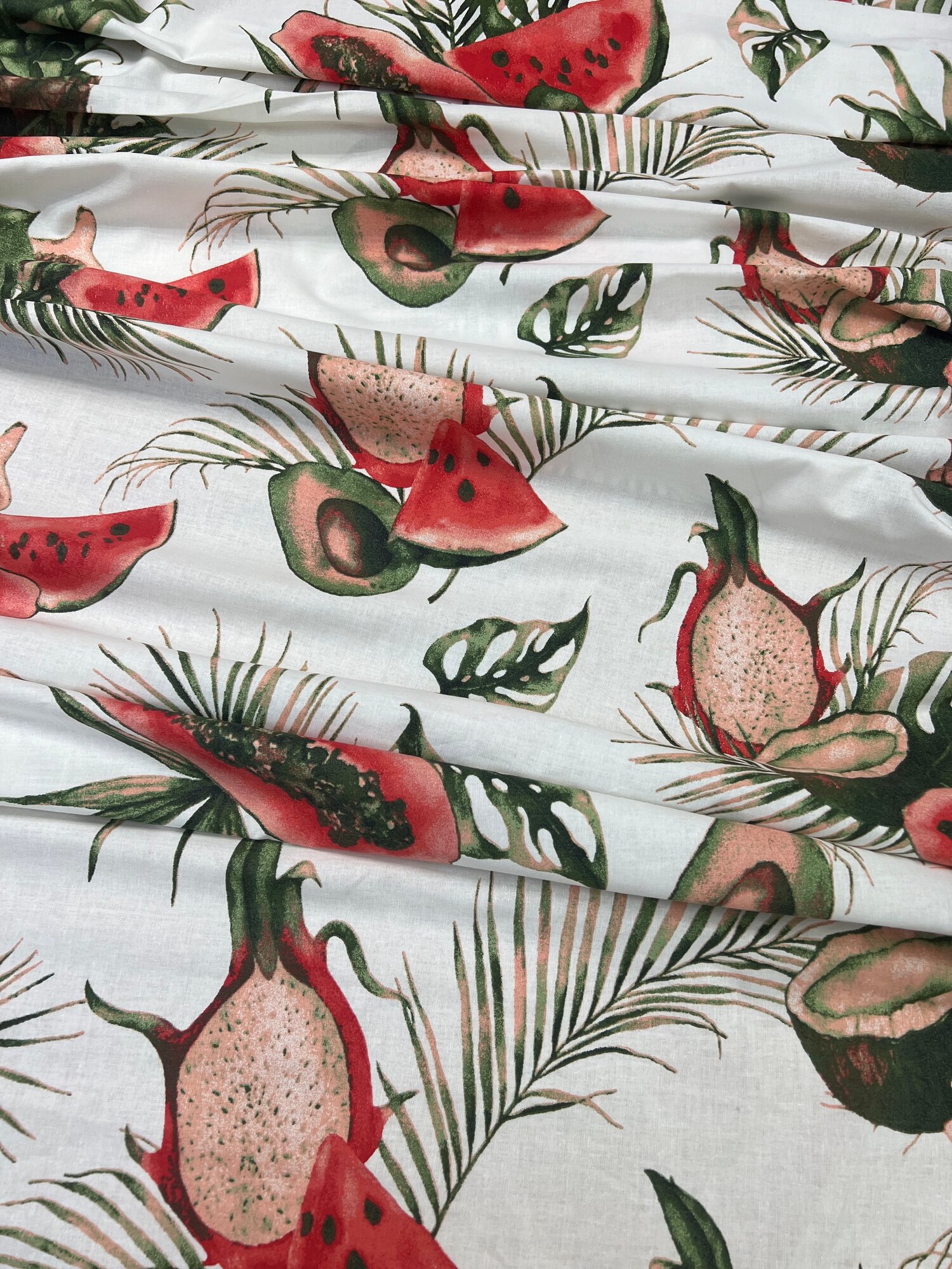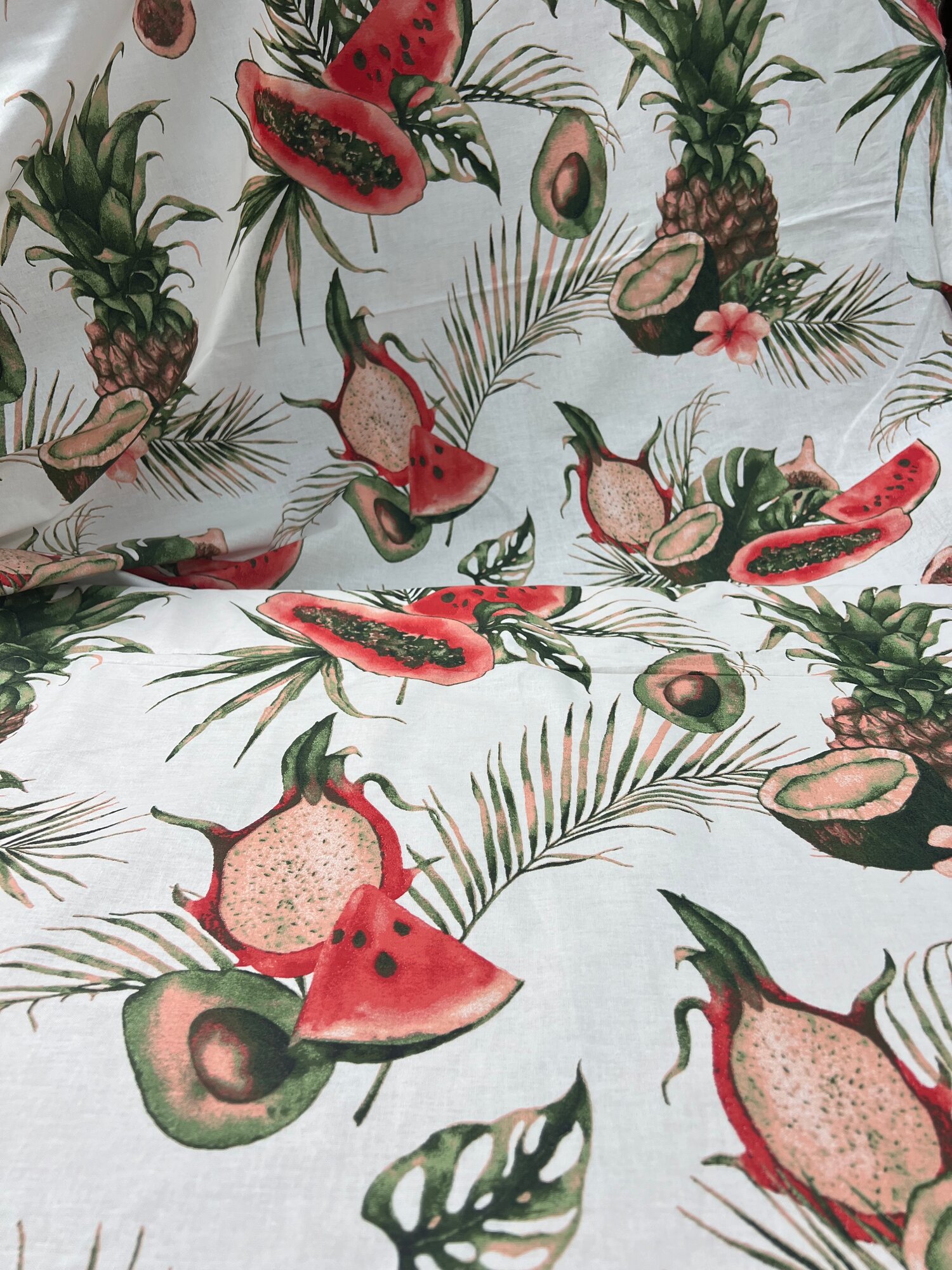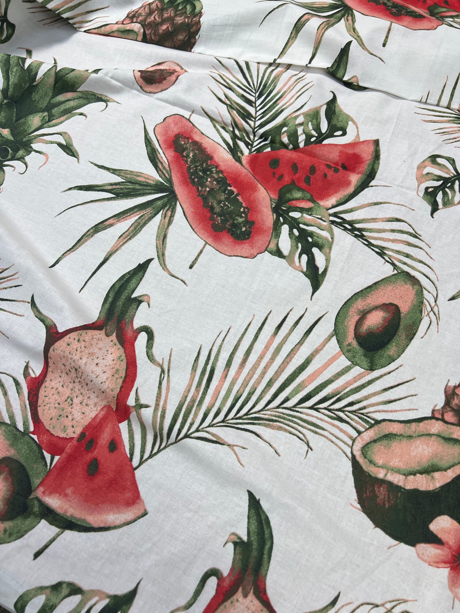Купить Ткань для шитья постельного белья и рукоделия Бязь ГОСТ, Тропические Фрукты, 100% хлопок, ширина 220 см, плотность 142 г/м2, на отрез