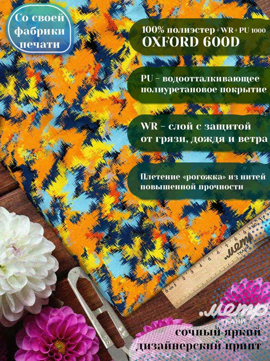 Ткань Оксфорд 600D WR PU, прочная ткань для шитья, отрез 147 100 см, 220 г/м , с принтом
